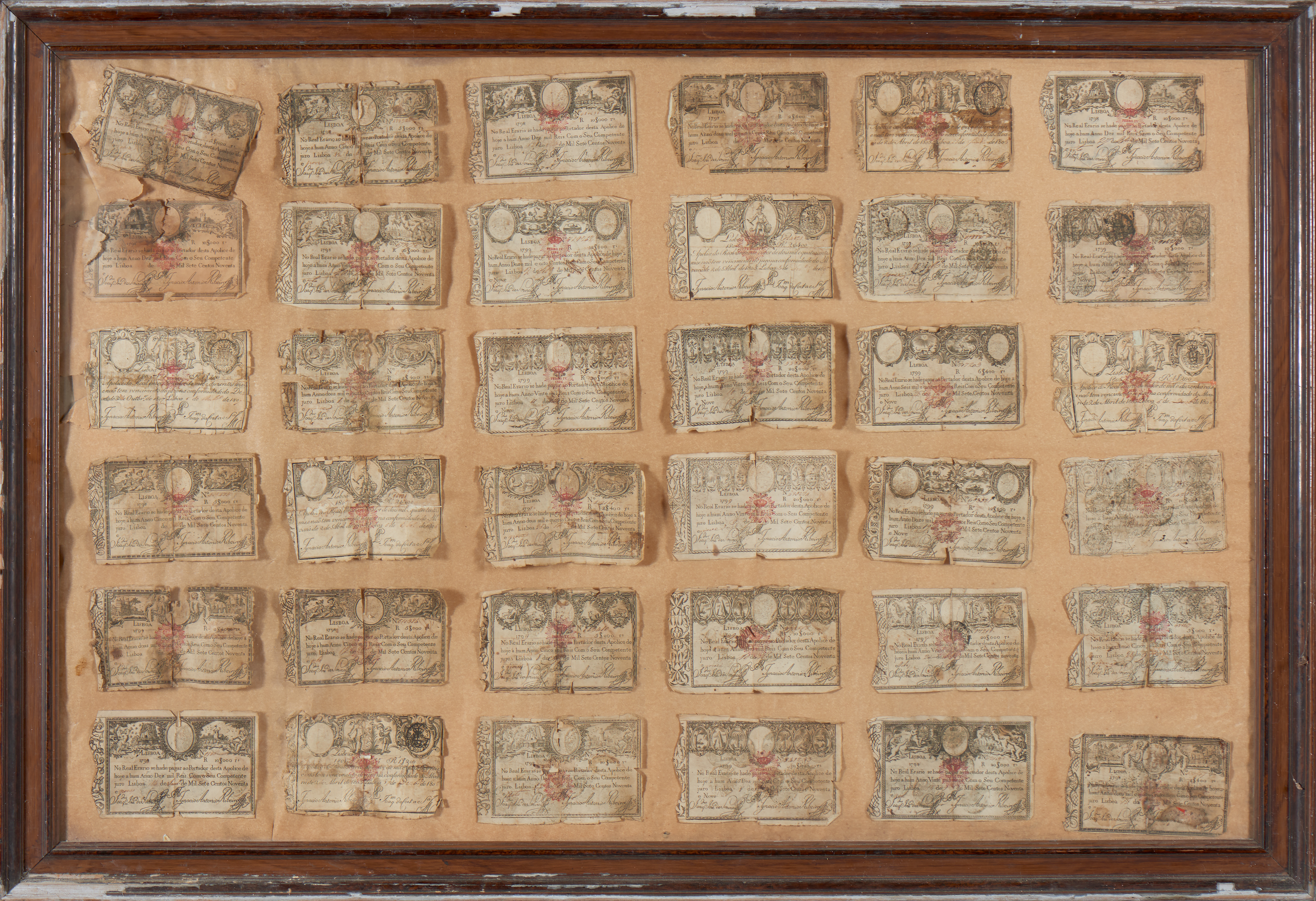 Conjunto de trinta e seis apólices do Real Erário
