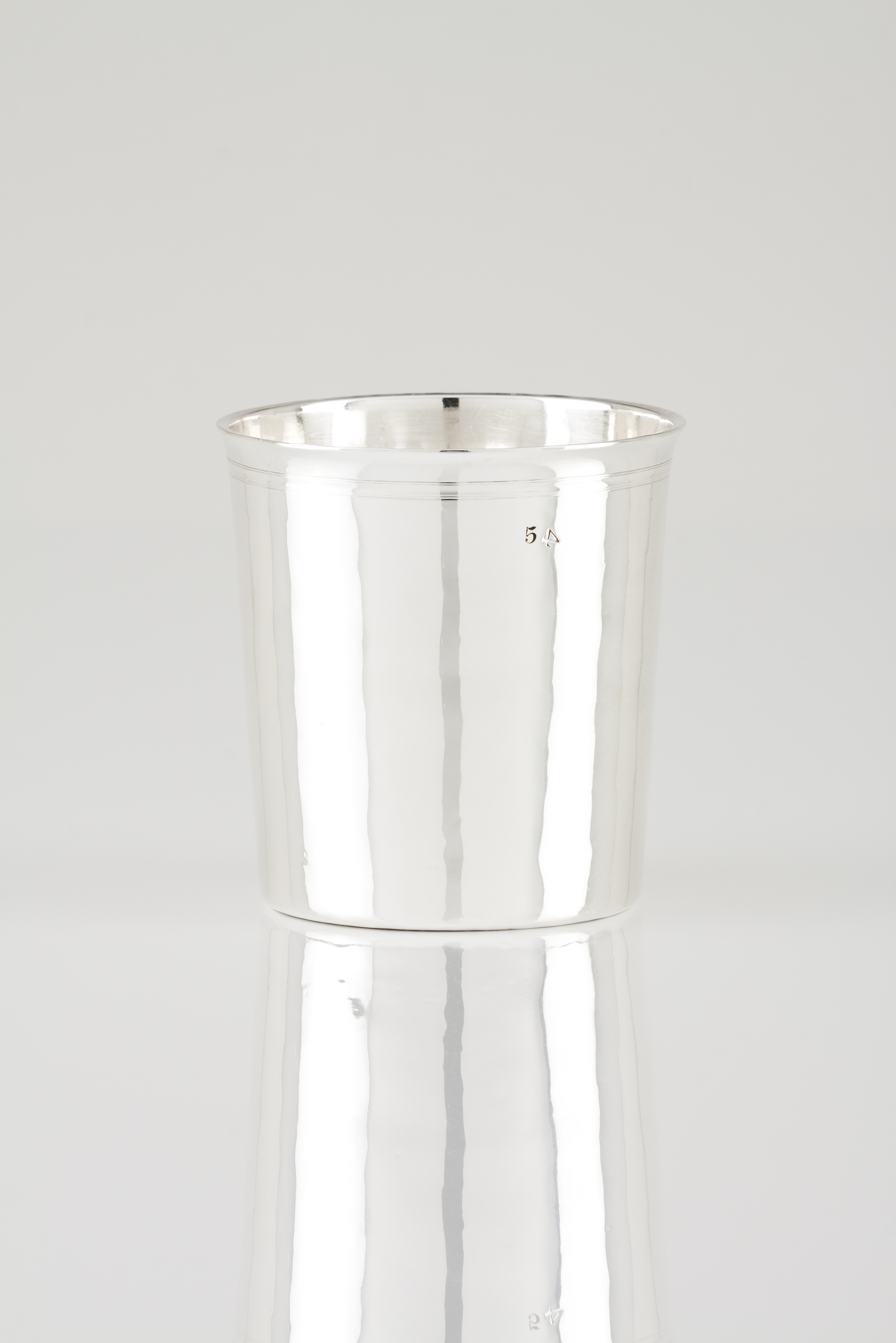De formato cilíndrico com decoração de frisos assente numa base plana