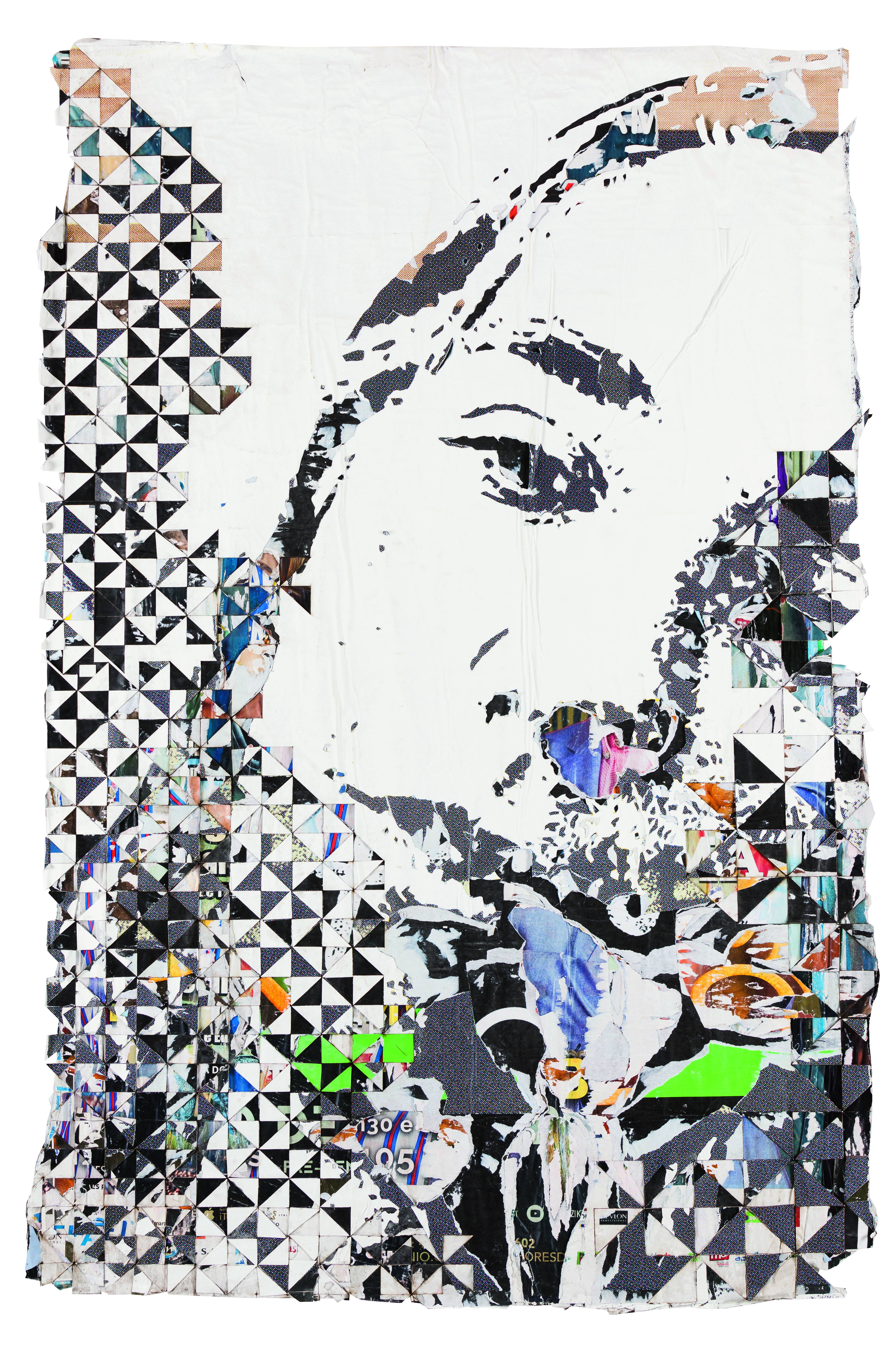 Cartazes recolhidos na rua, esculpidos manualmente e cortados a laser