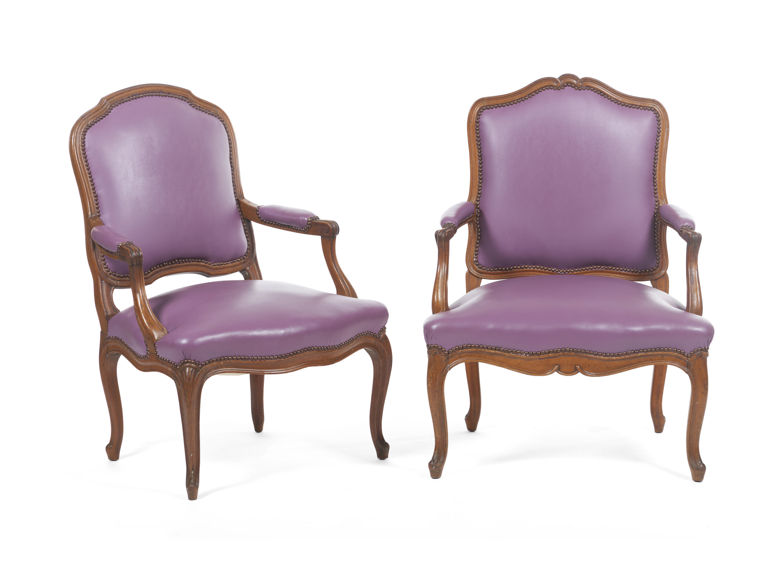 Assentos, costas e apoios dos braços forrados a napa com pregaria