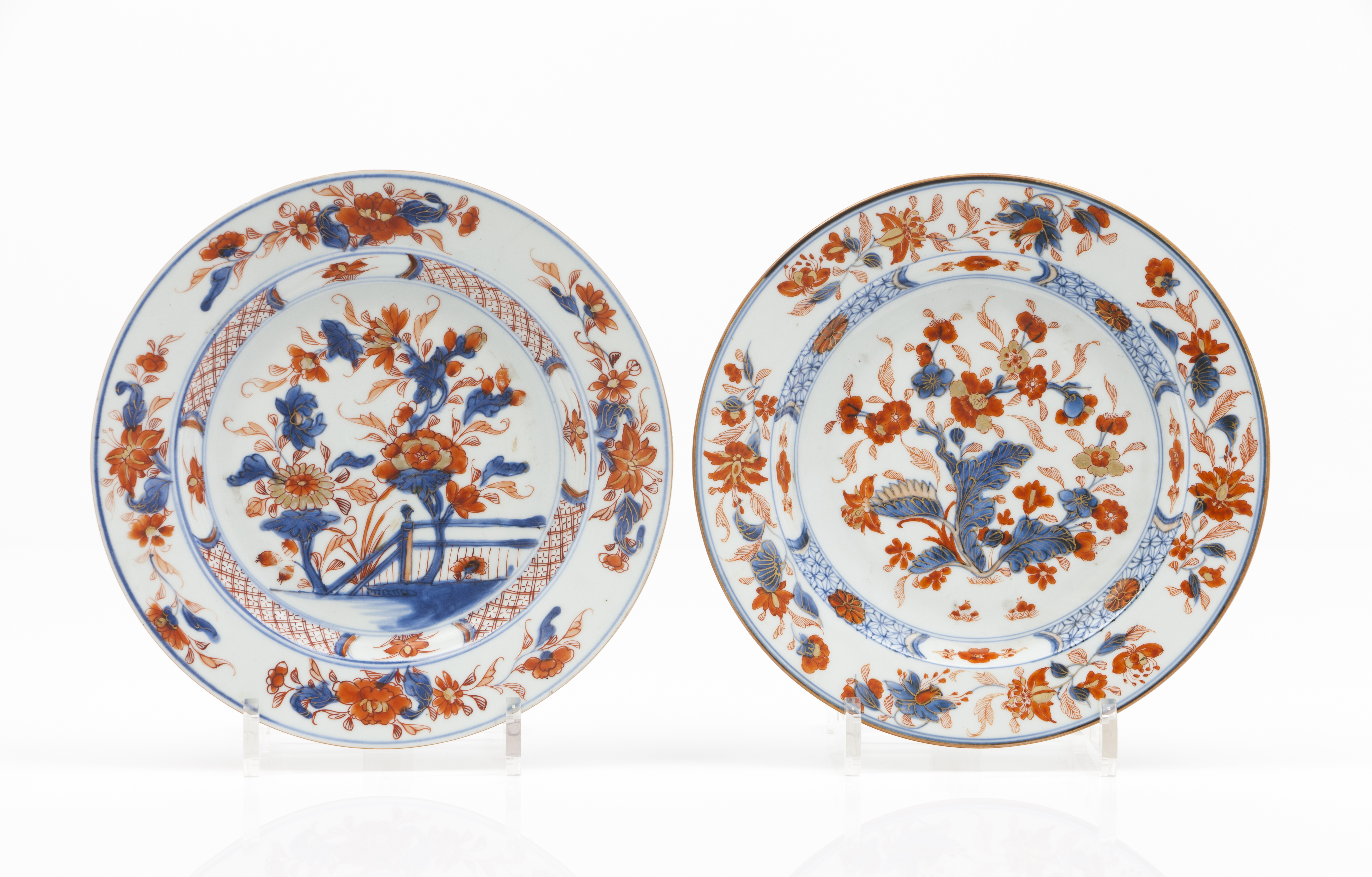Decorados a azul sob vidrado, rouge-de-fer e dourado representando motivos florais