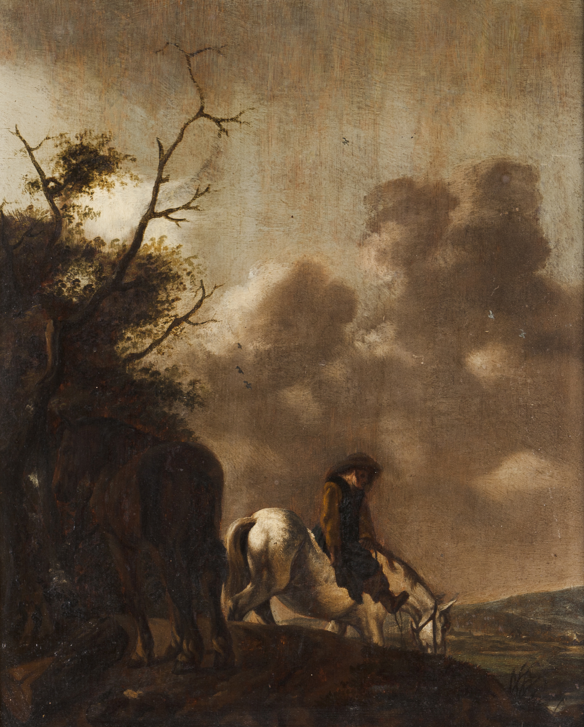 Paisagem com arvoredo, cavalos e figura