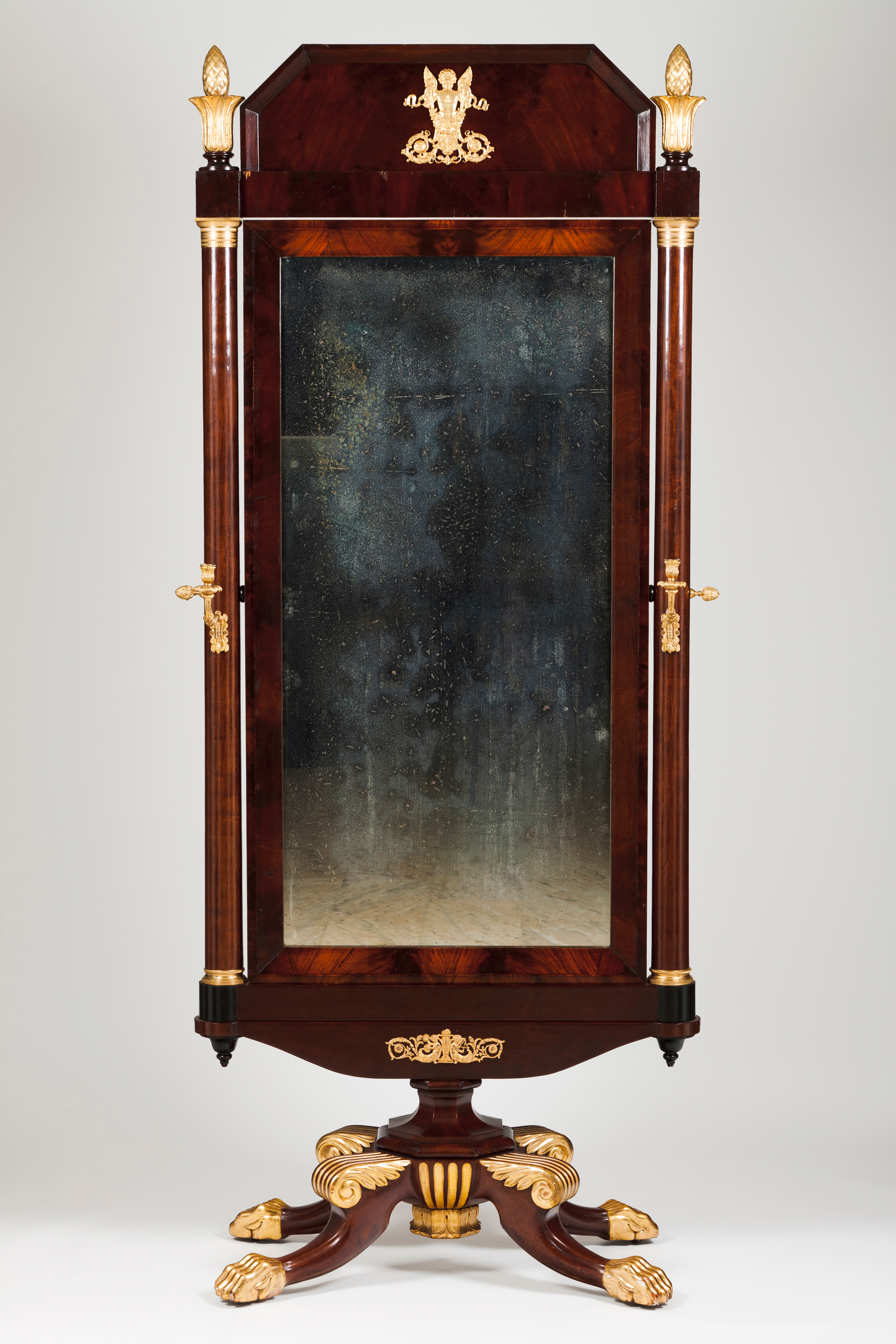 Cimalha com aplicação em bronze dourado representando anjo com grinaldas e enrolamentos e pináculos em forma de pinhas