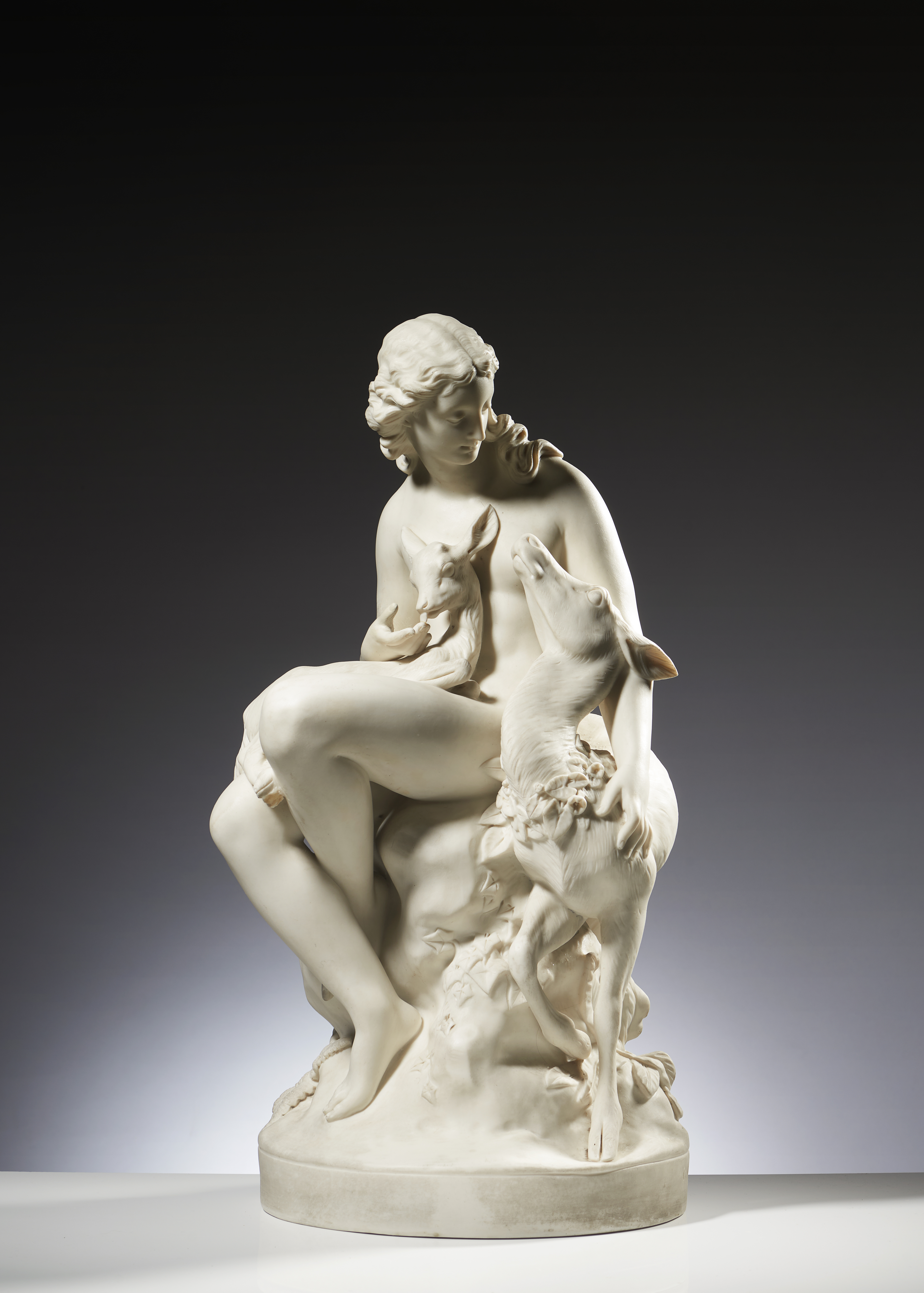 Figura feminina com gamo e corça
