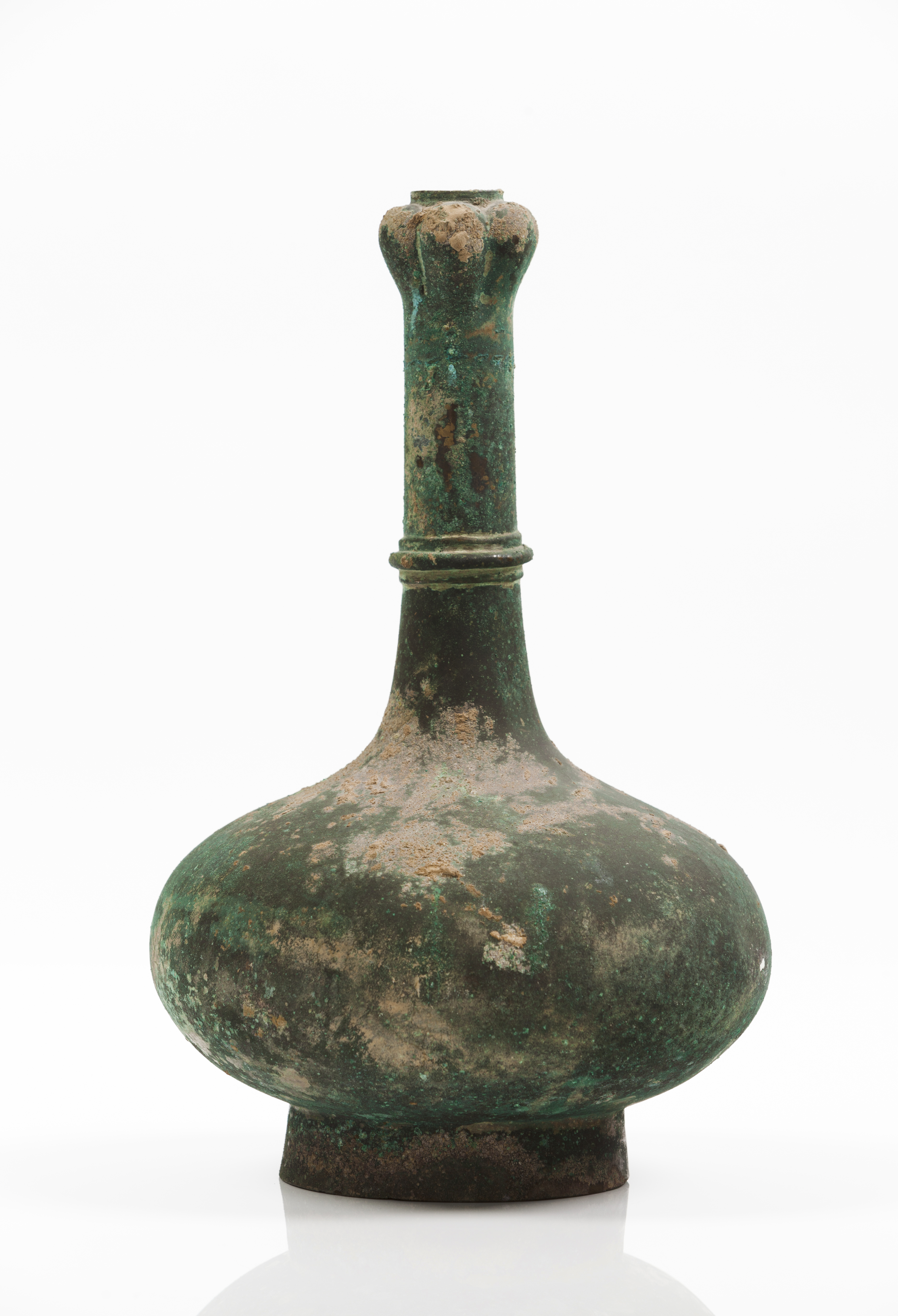 De formato globular e com pescoço alongado a terminar num bocal gomado em forma de cabeça-de-alho