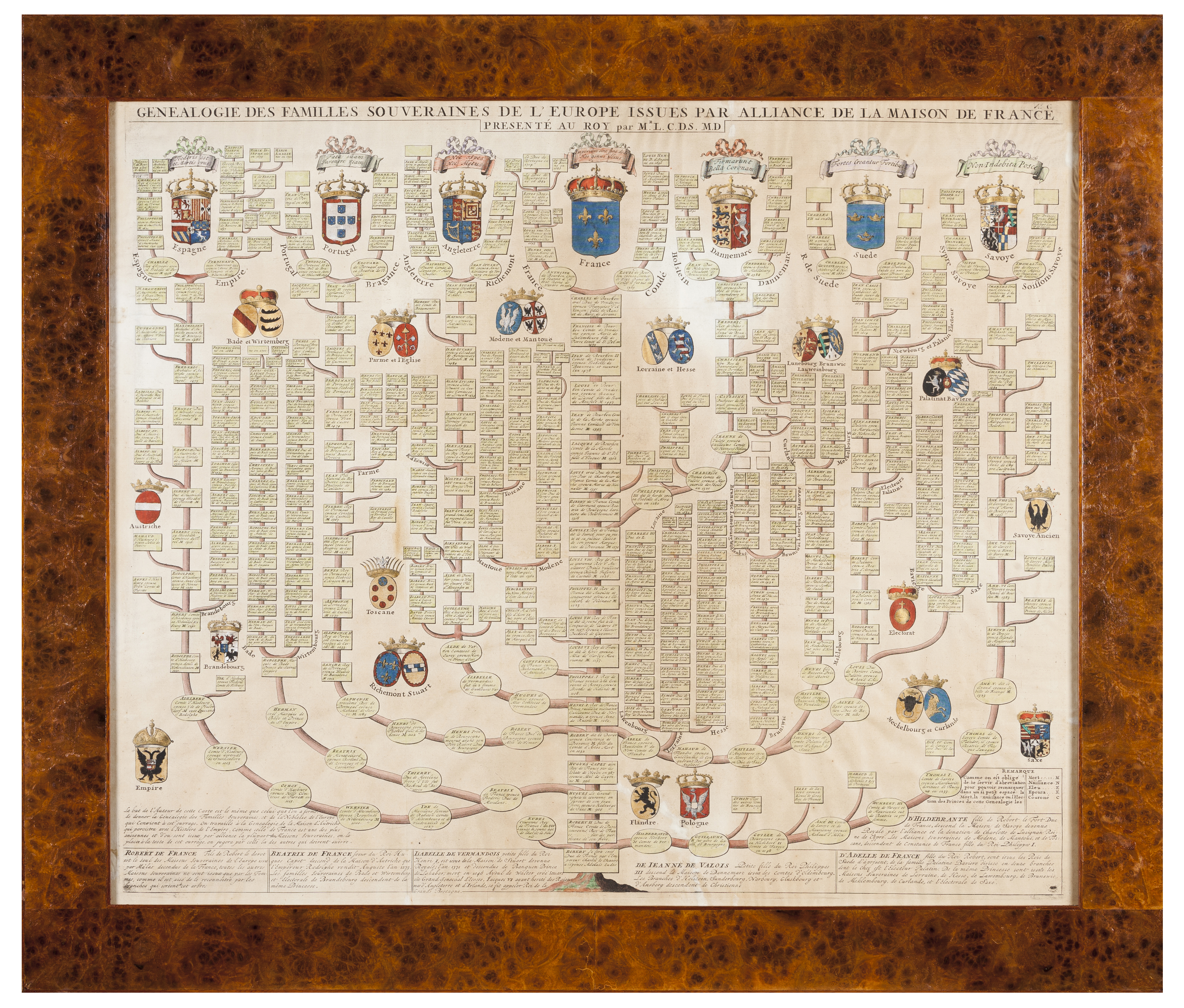 "Genealogia des families souveraines de l'Europe issues par alliance de la maison de France Presenté au Roy par M.r L. C.D.S. M.D "