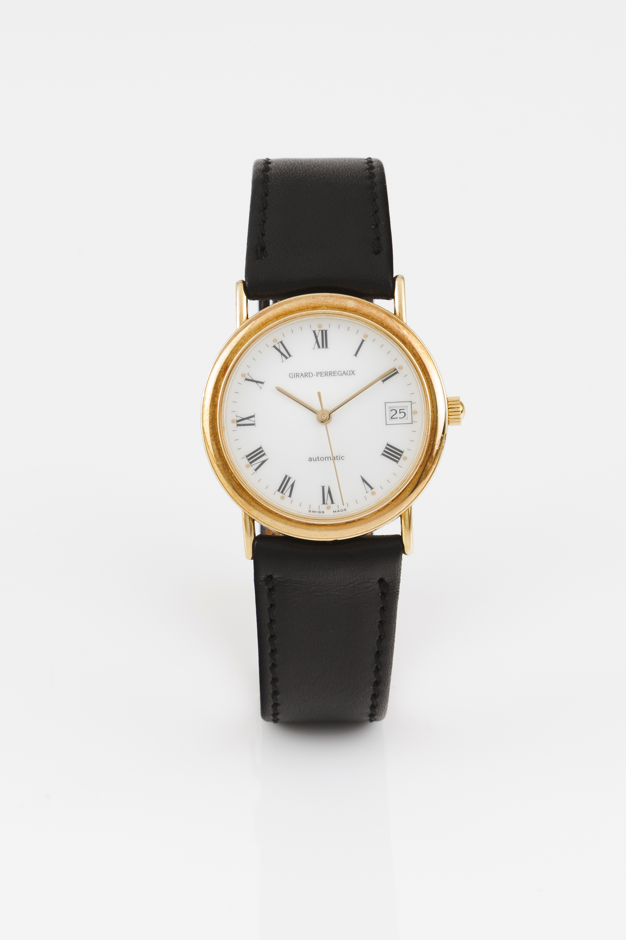 Relógio de marca Girard Perregauz. Movimento mecânico automático com data às 3h. Caixa em ouro (750/000).Bom estado de conservação.