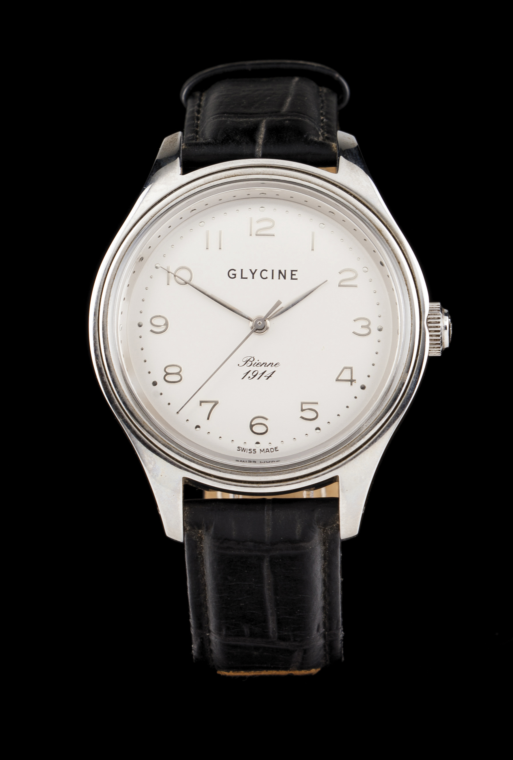 Relógio marca Glycine, modelo 1914 (ano da fundação da marca). Movimento de corda manual cal.ETA 2801-2 com microregulação. Caixa em aço com vidro na tampa traseira. Relógio em excelente estado de conservação.