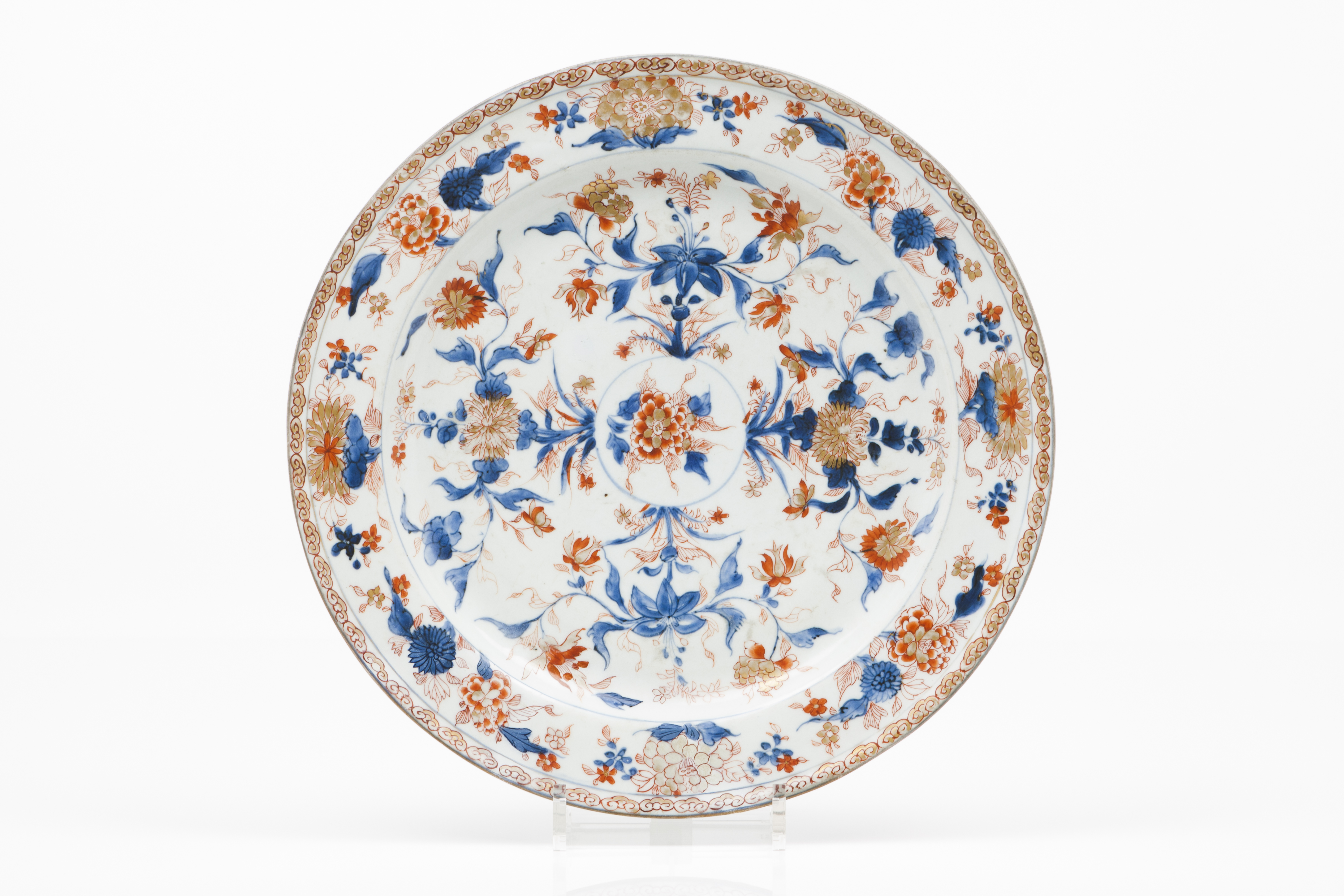 Decoração policromada e dourada "Imari" representando motivos florais