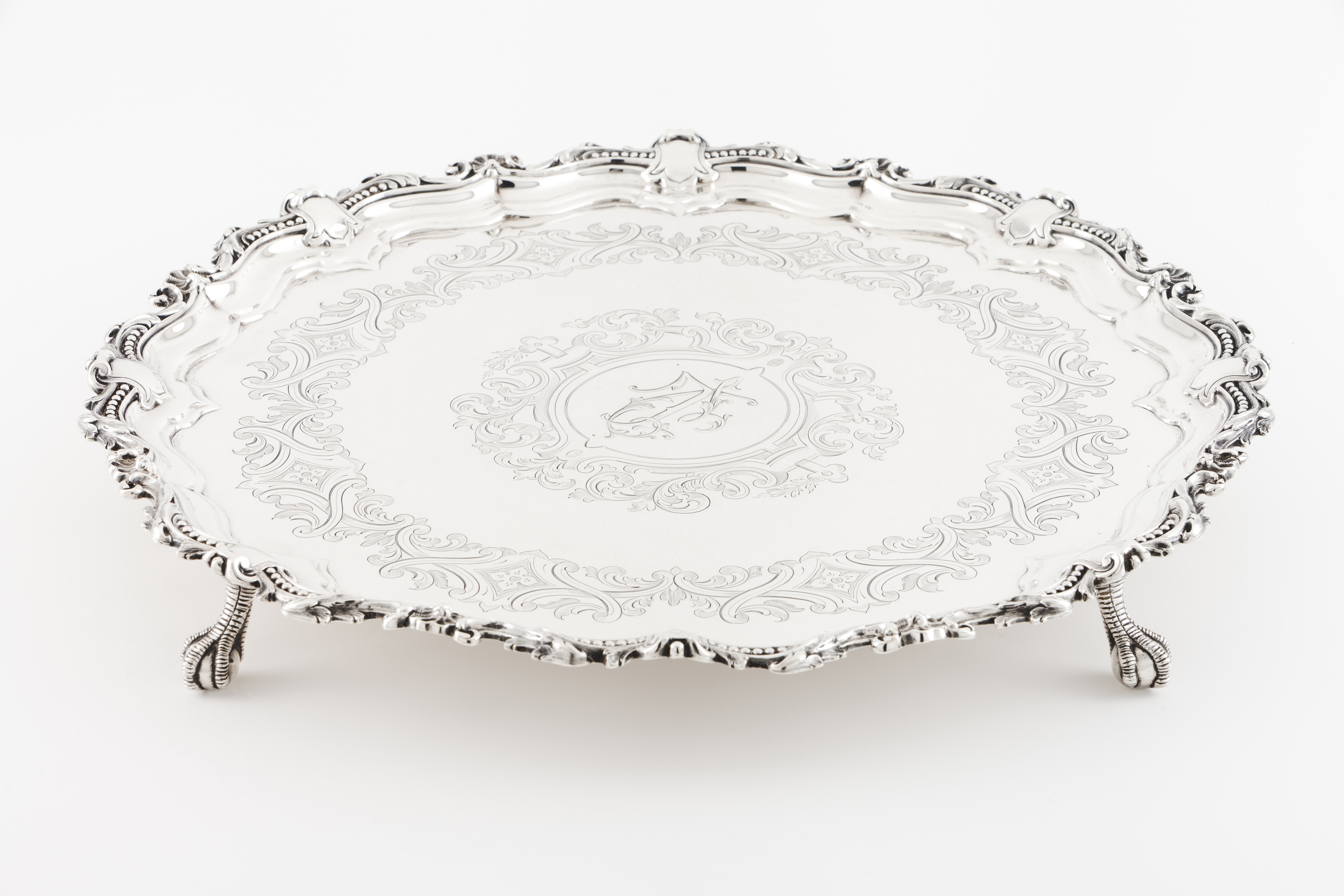 Fundo liso, posteriormente cinzelado com monograma e círculos com motivos vegetalistas estilizados