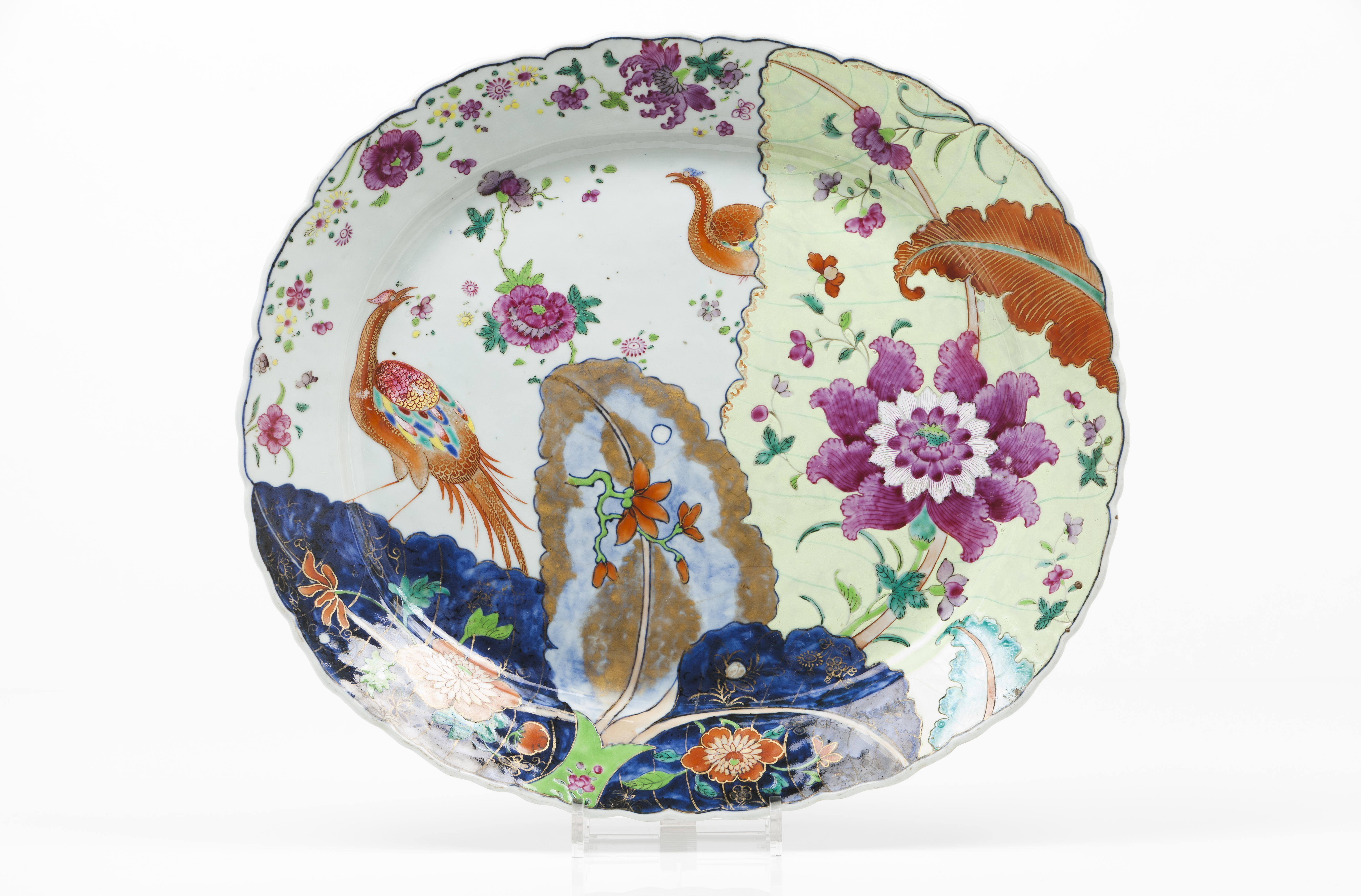 Com aba recortada e decoração policromada "folha de tabaco com fénix"