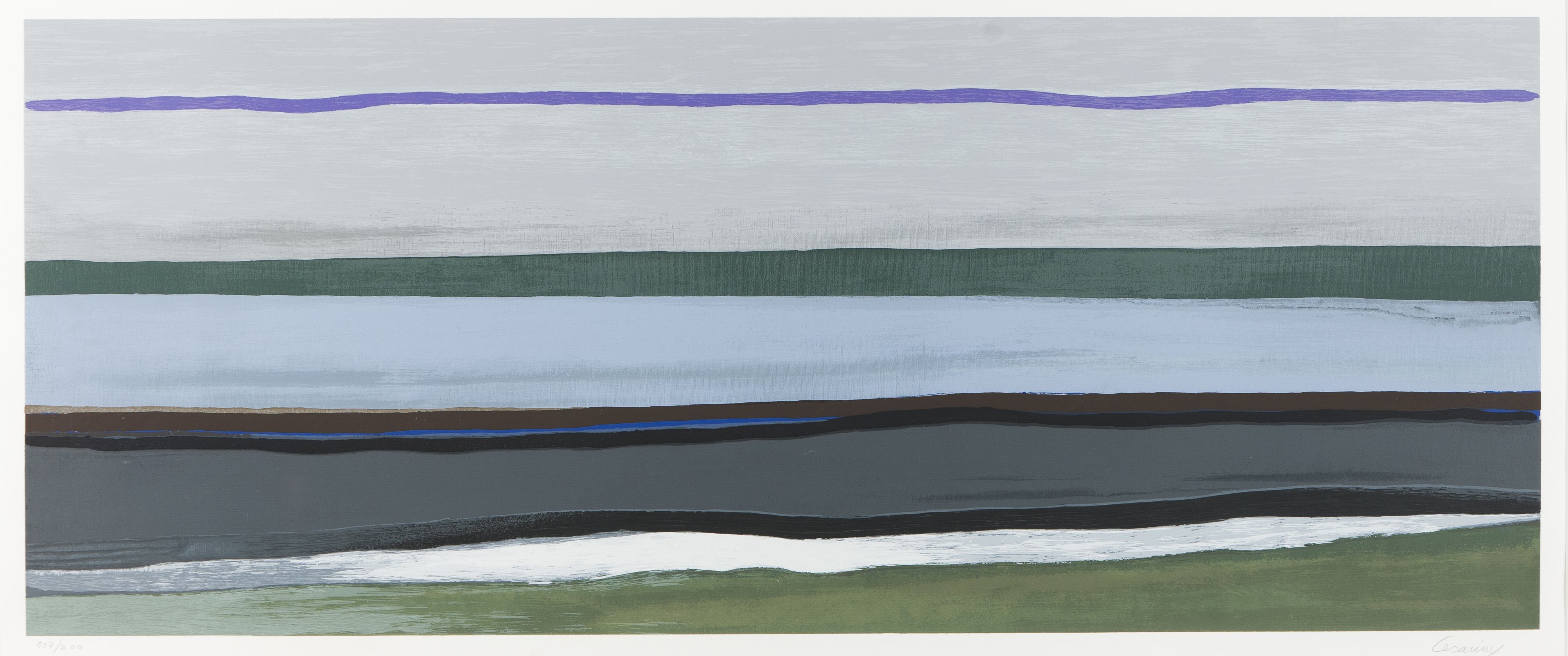 (serigrafia fixa ao passe-partout, verso ligeiramente escurecido e com marcas da fita adesiva e margens cortadas)