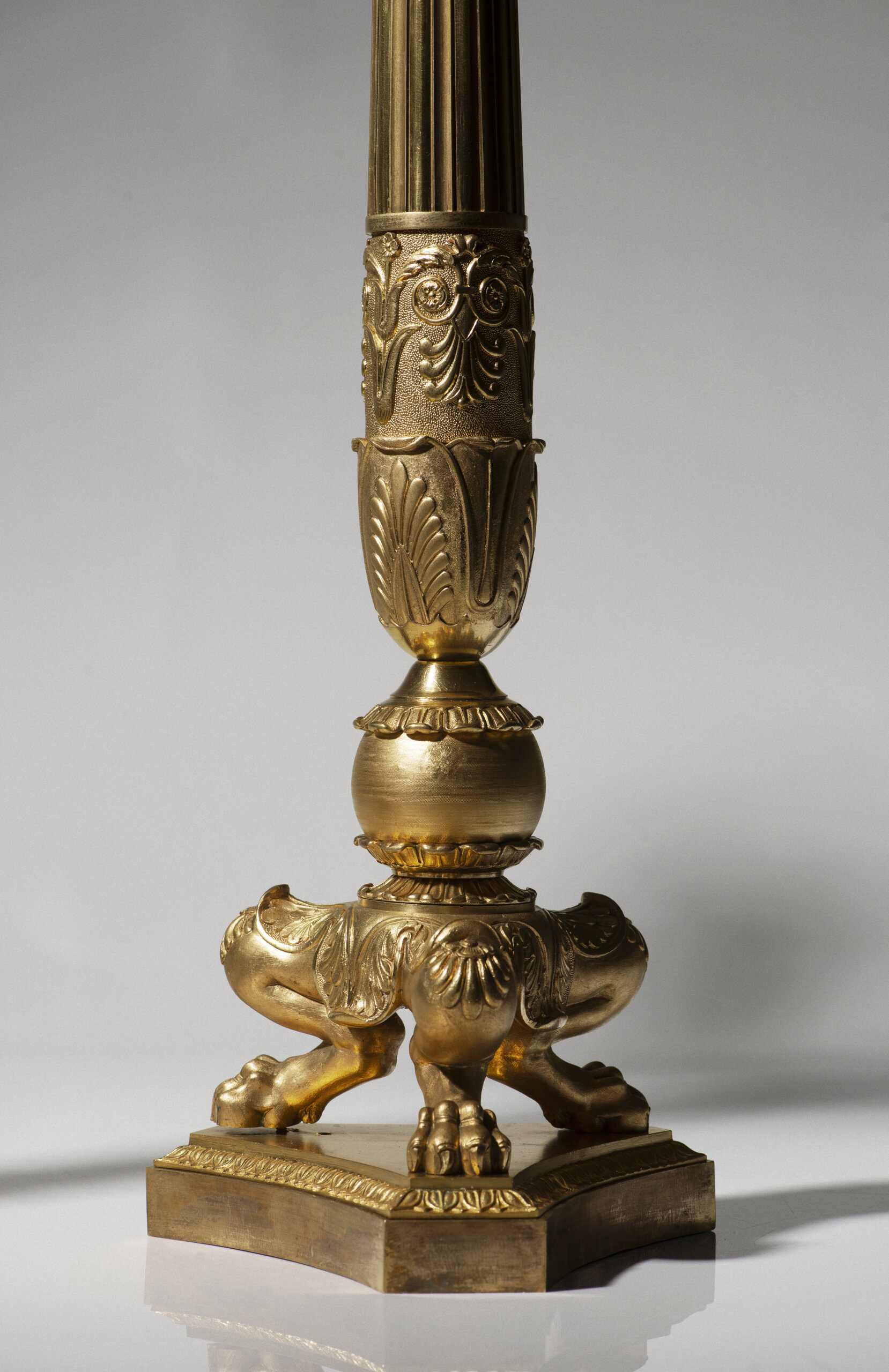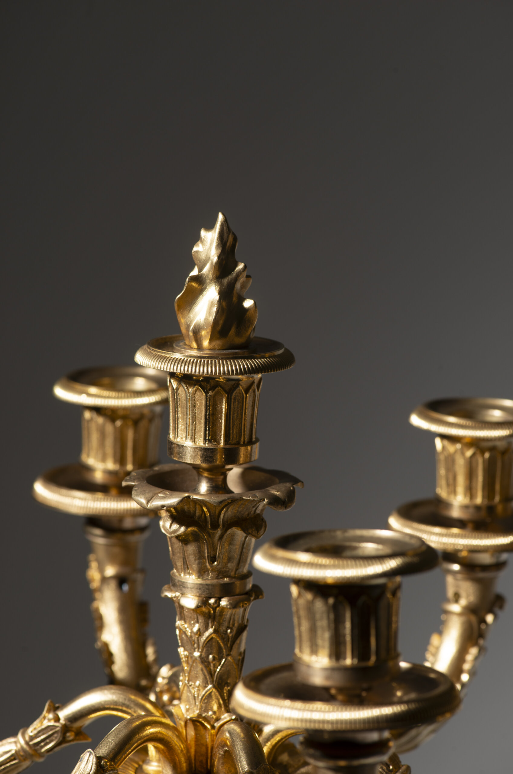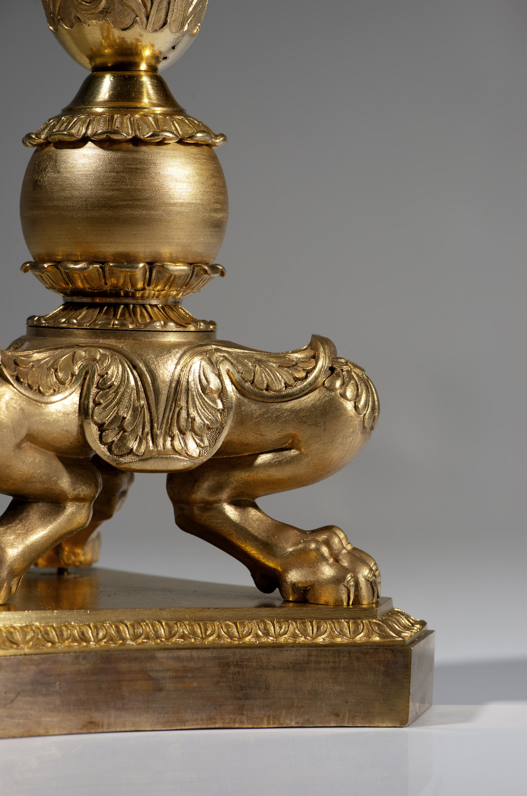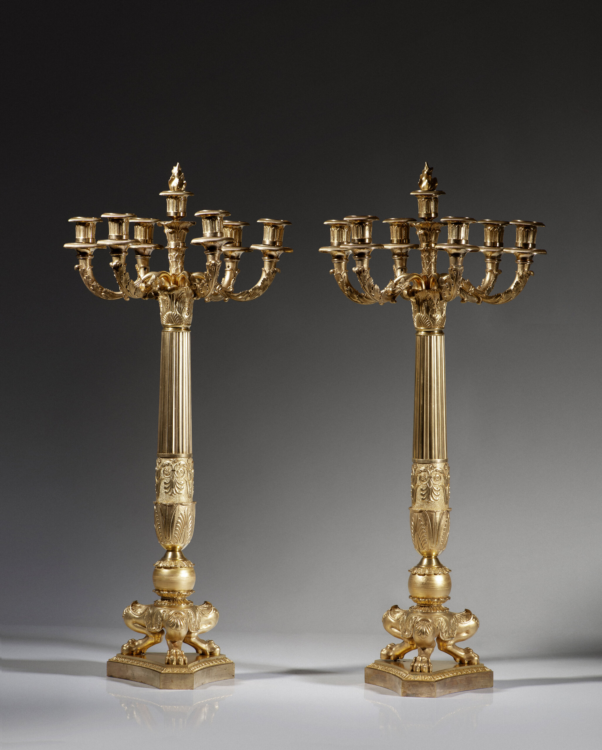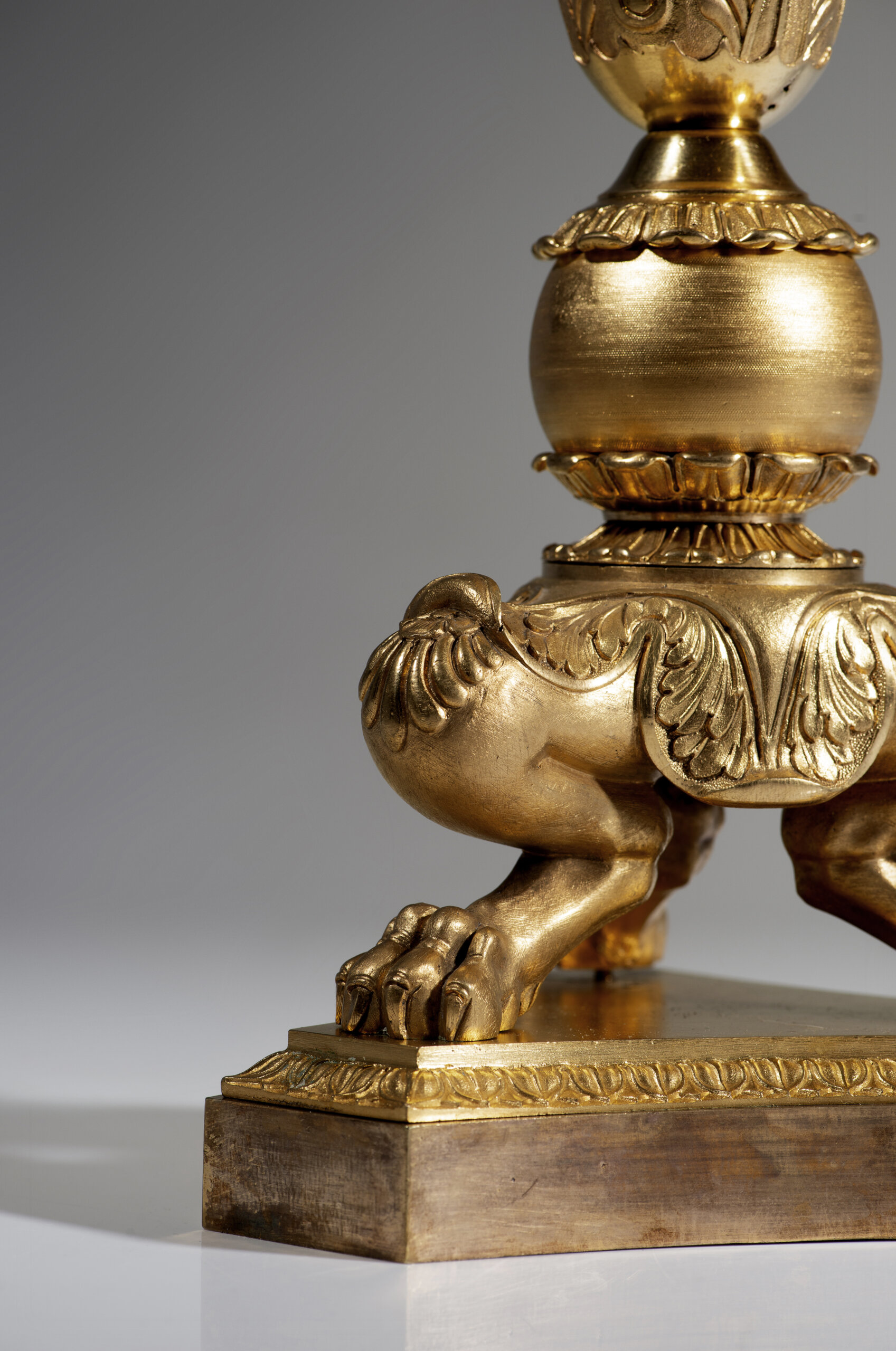 Modelo comparável a produções do atelier de Pierre-Philippe Thomire (1751–1843). Cf. par assinado THOMIRE A PARIS, Sotheby's Paris, Important Mobilier, Objets d'art, Sculpture et Orfèvrerie, lote 155.