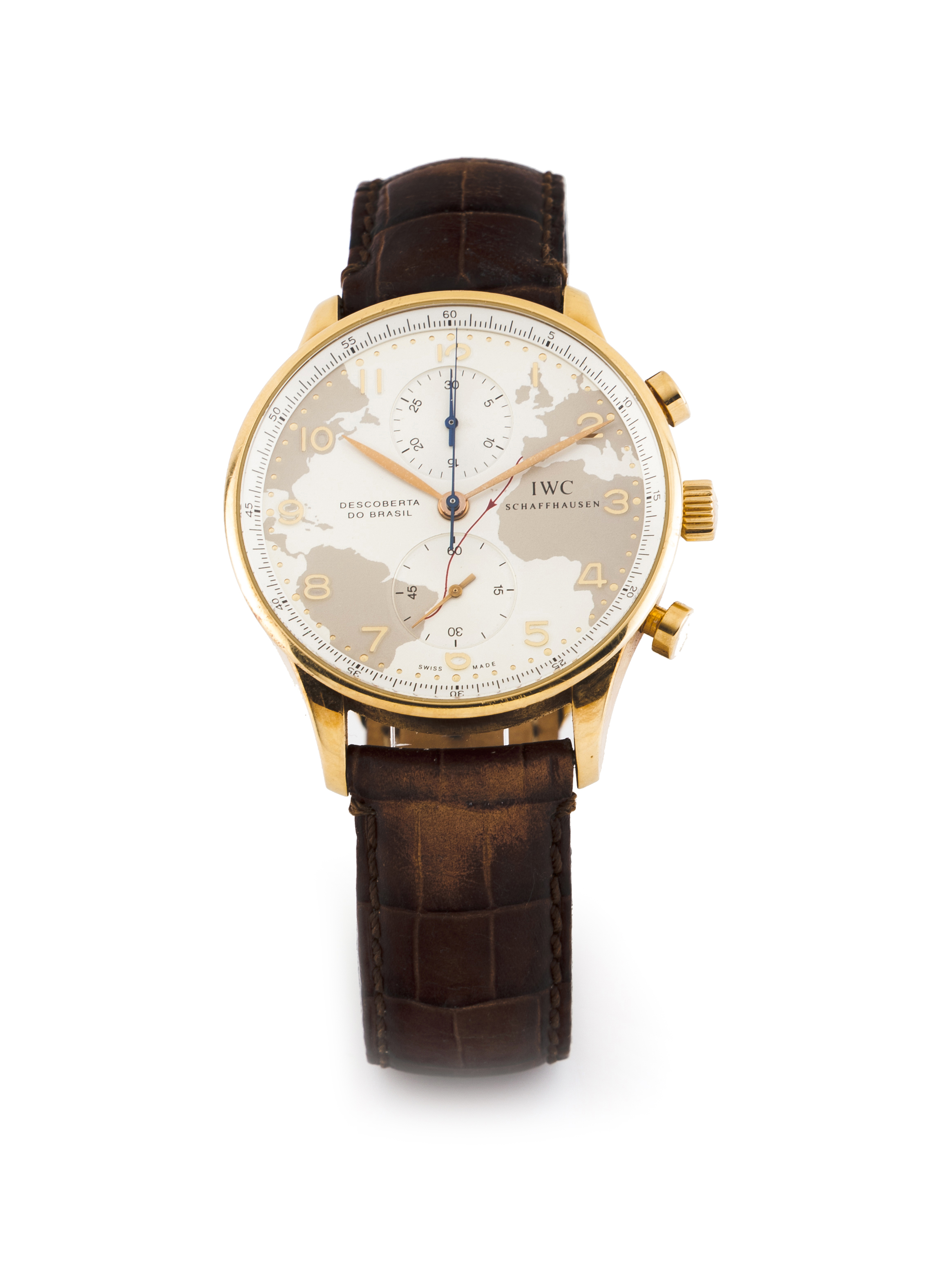 Edição Limitada Nº 73/100 do 5º Centenário da Descoberta do Brasil. Movimento mecânico automático com função cronógrafo. Caixa em ouro (750/000). Com marcas de uso. Com caixa e documentos.