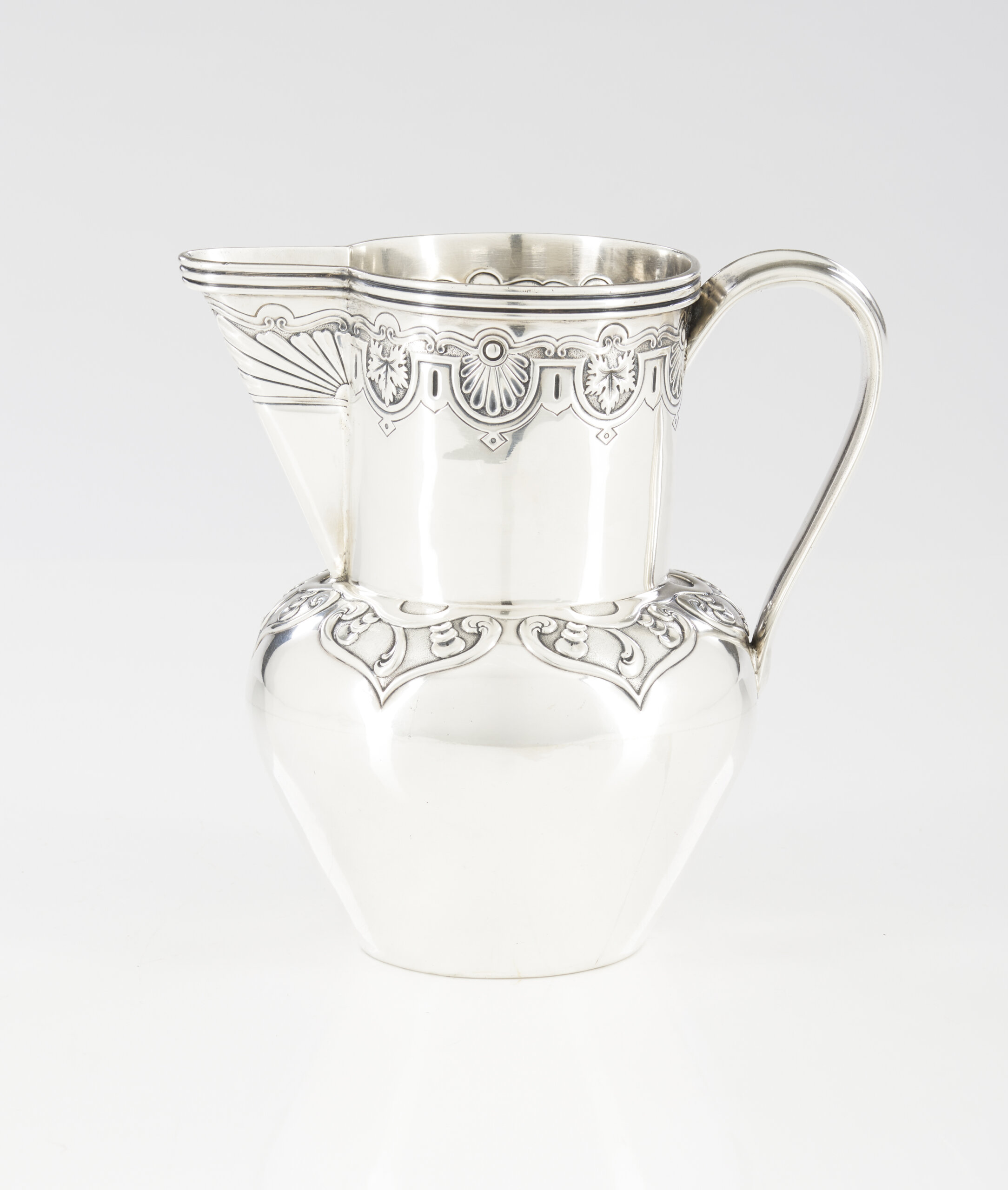 Decoração cinzelada, gravada e relevada representando concheados e motivos vegetalistas
