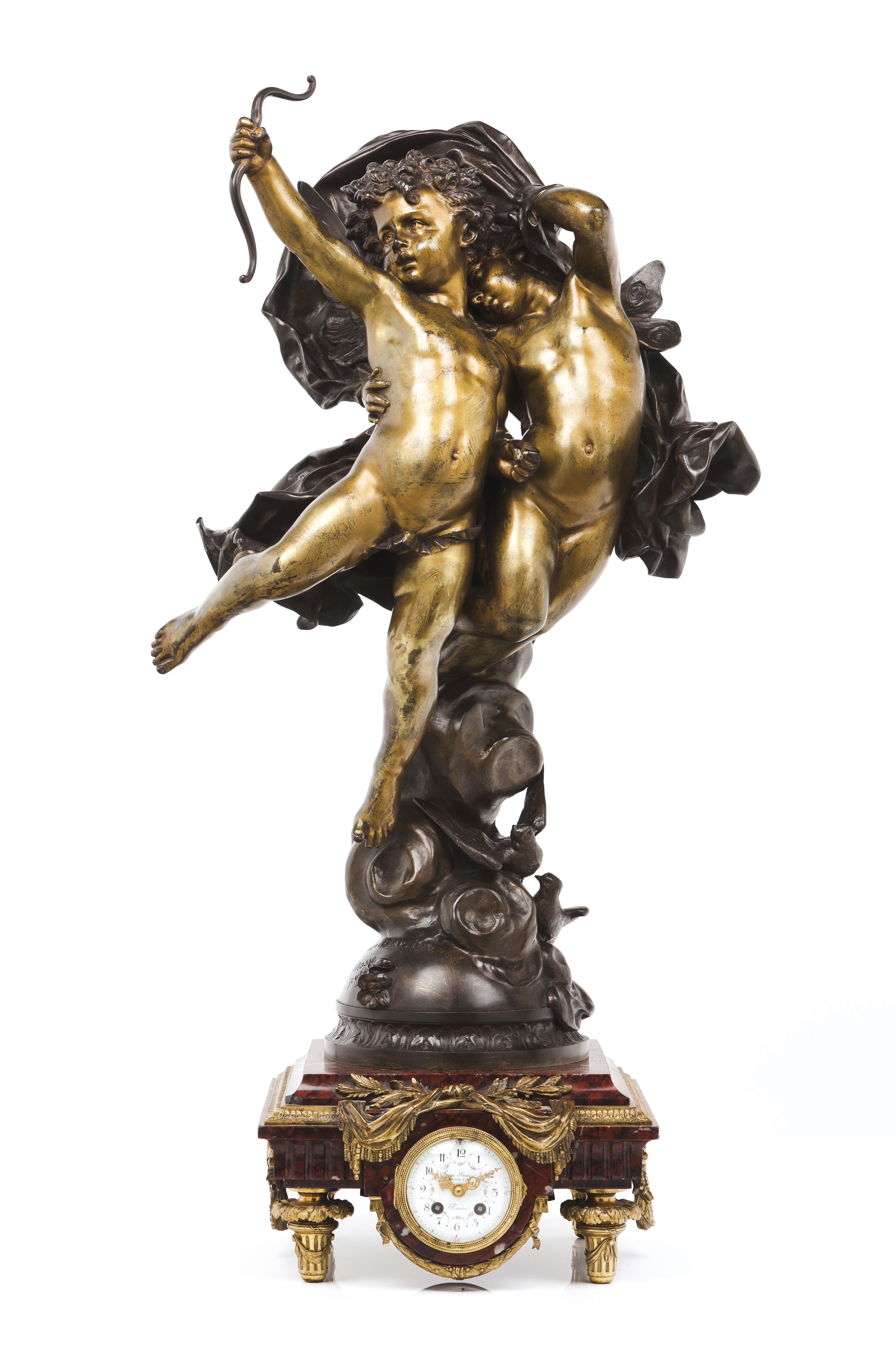 Relógio com mostrador em esmalte decorado com grinaldas e marcado "Susse Frères Paris"