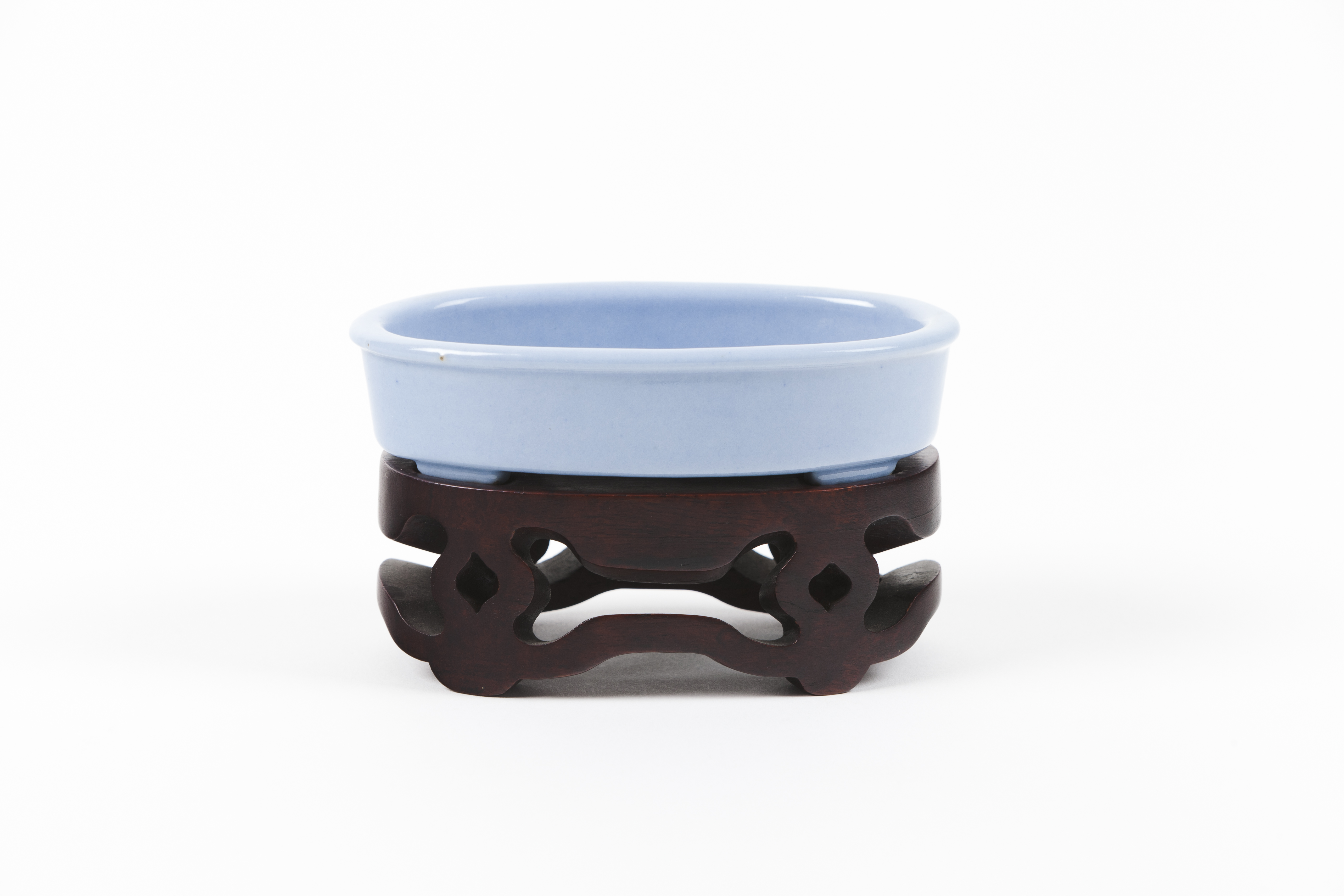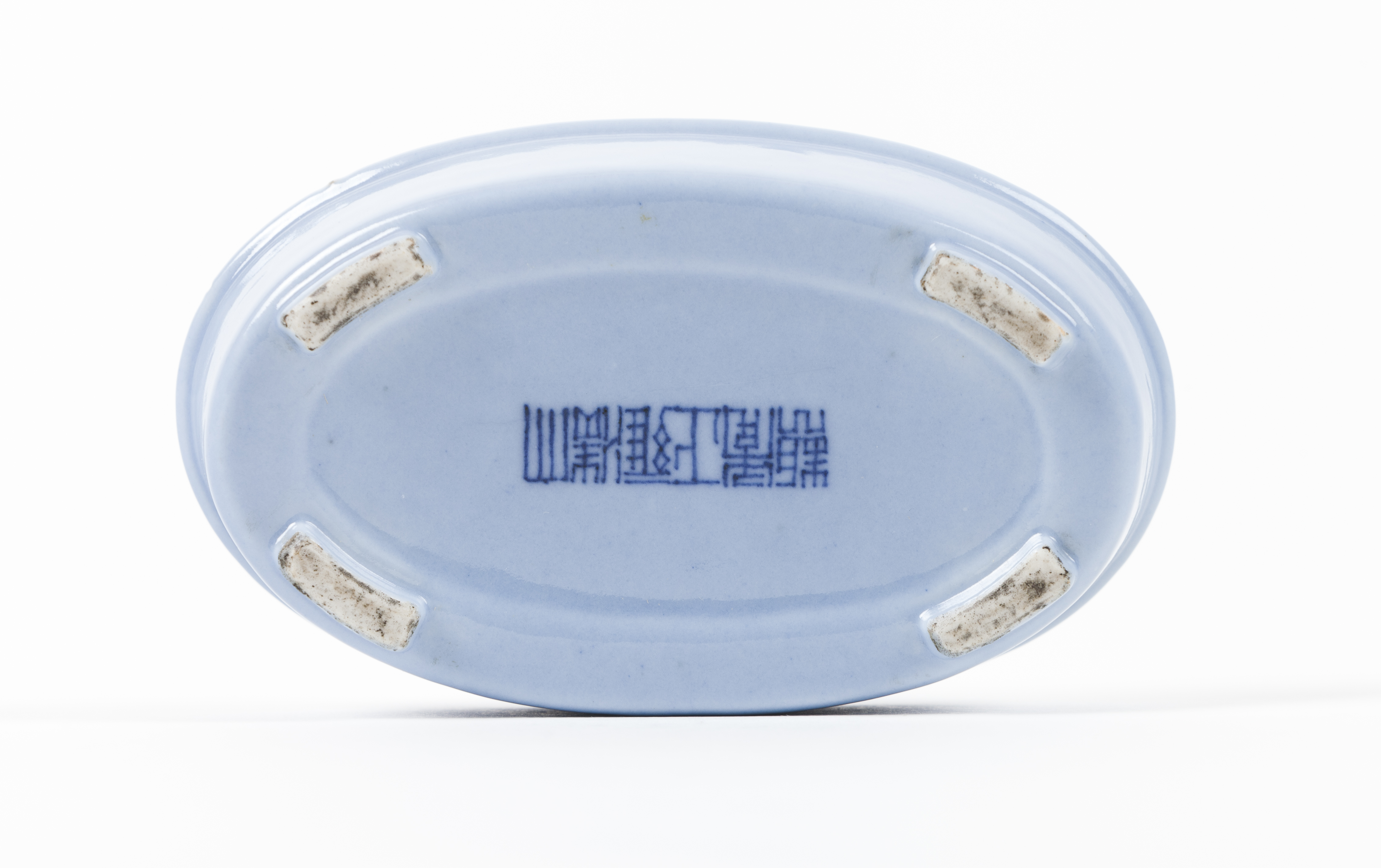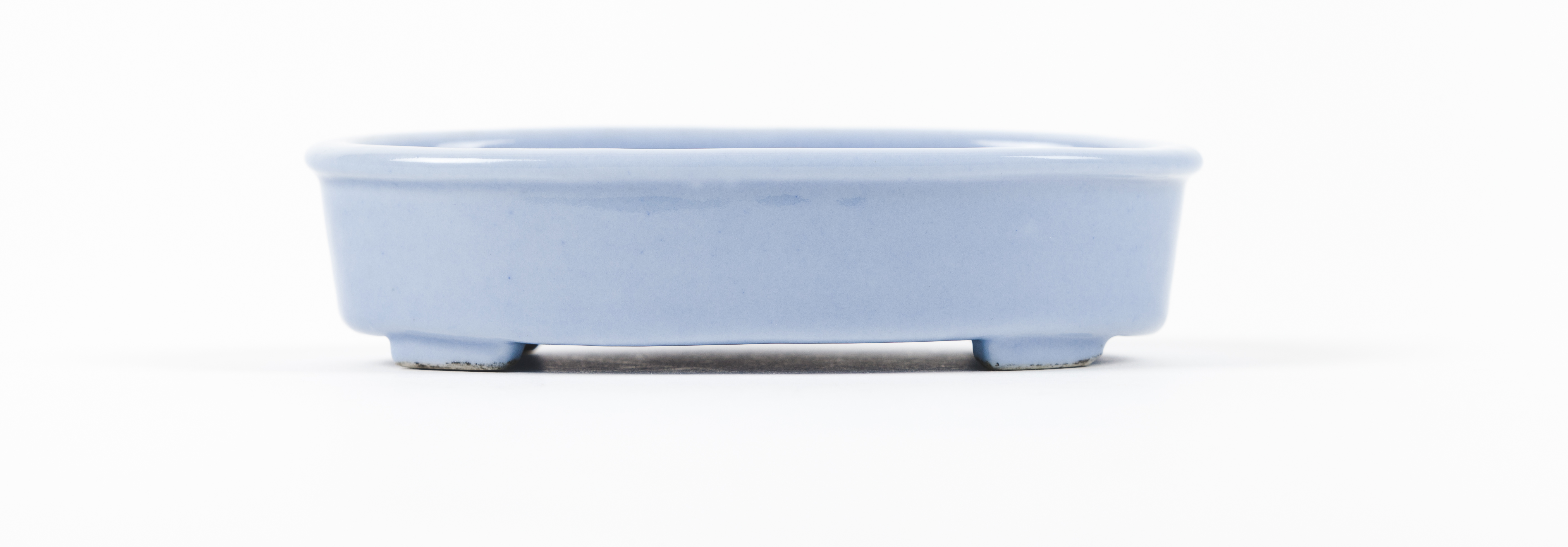 Em cerâmica revestida com vidrado azul lavanda