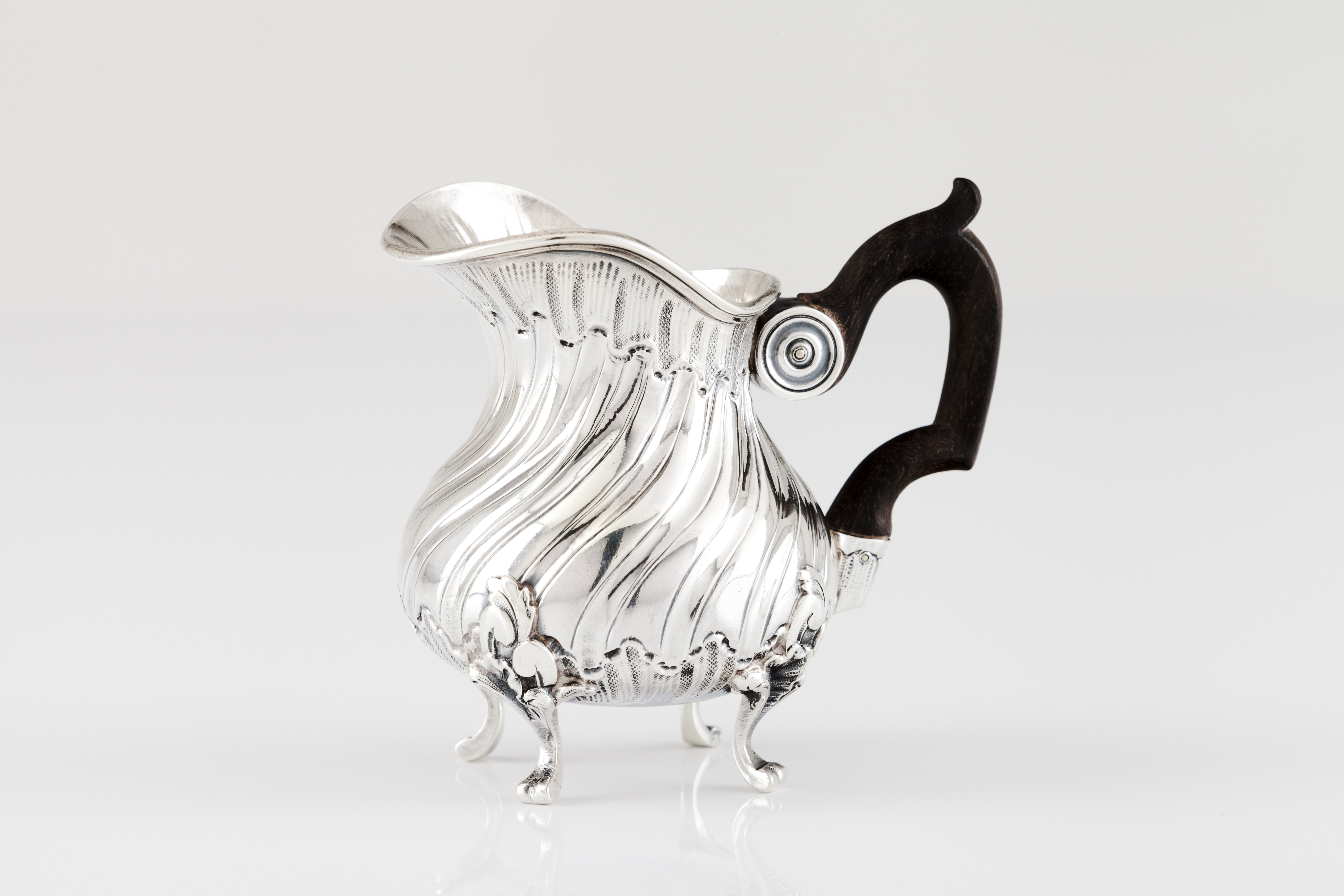 Prata de decoração Rocaille, assente sobre 4 pés e pega em madeira