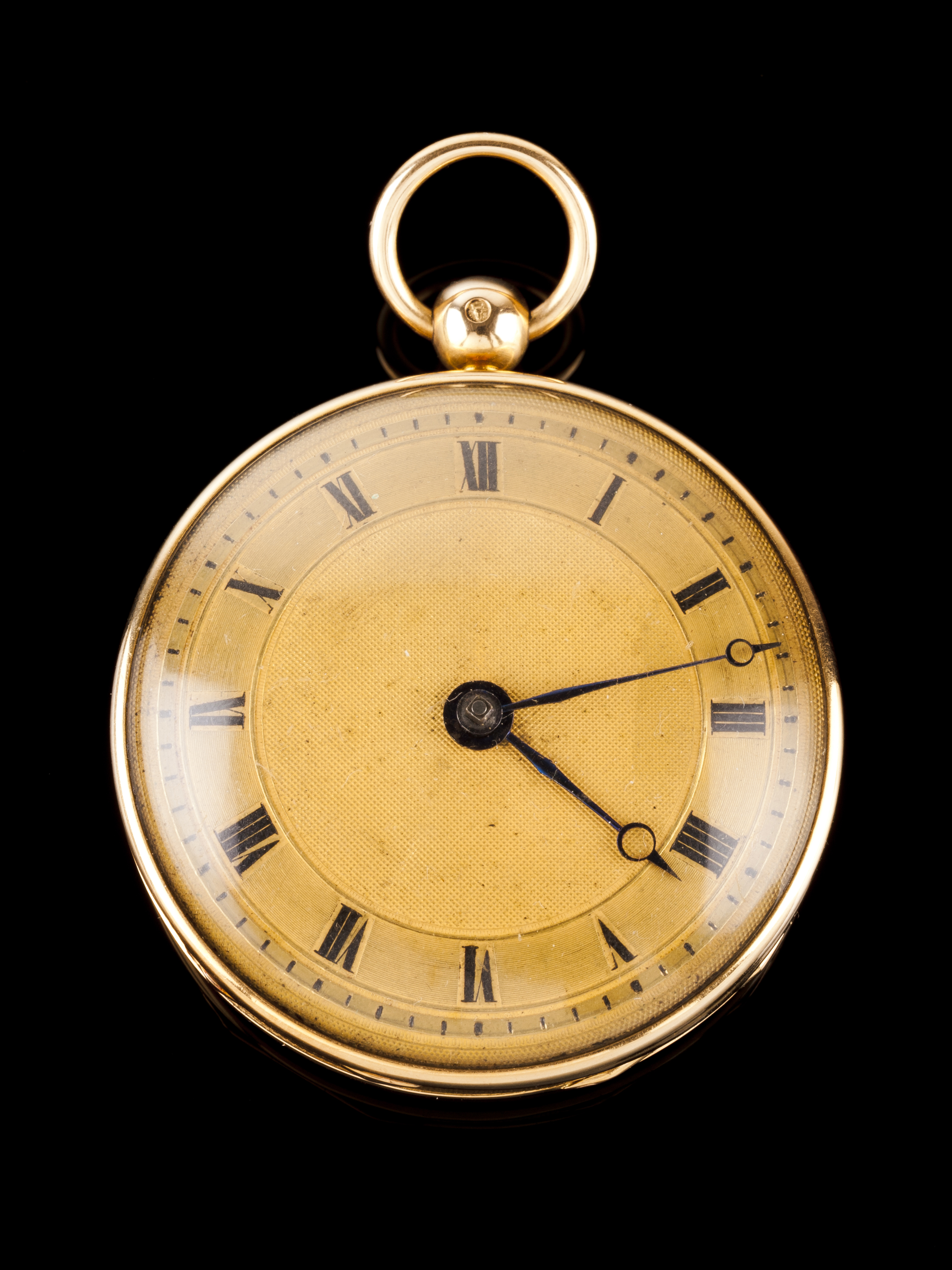 Relógio de bolso "Leroy Palais Royal" com caixa em ouro (750/000) de 45mm de diâmetro. Movimento mecânico de corda manual de chave (não acompanha). Ponteiros em aço estilo Breguet. Peça em bom estado com sinais de uso. A funcionar ao momento da avaliação.
