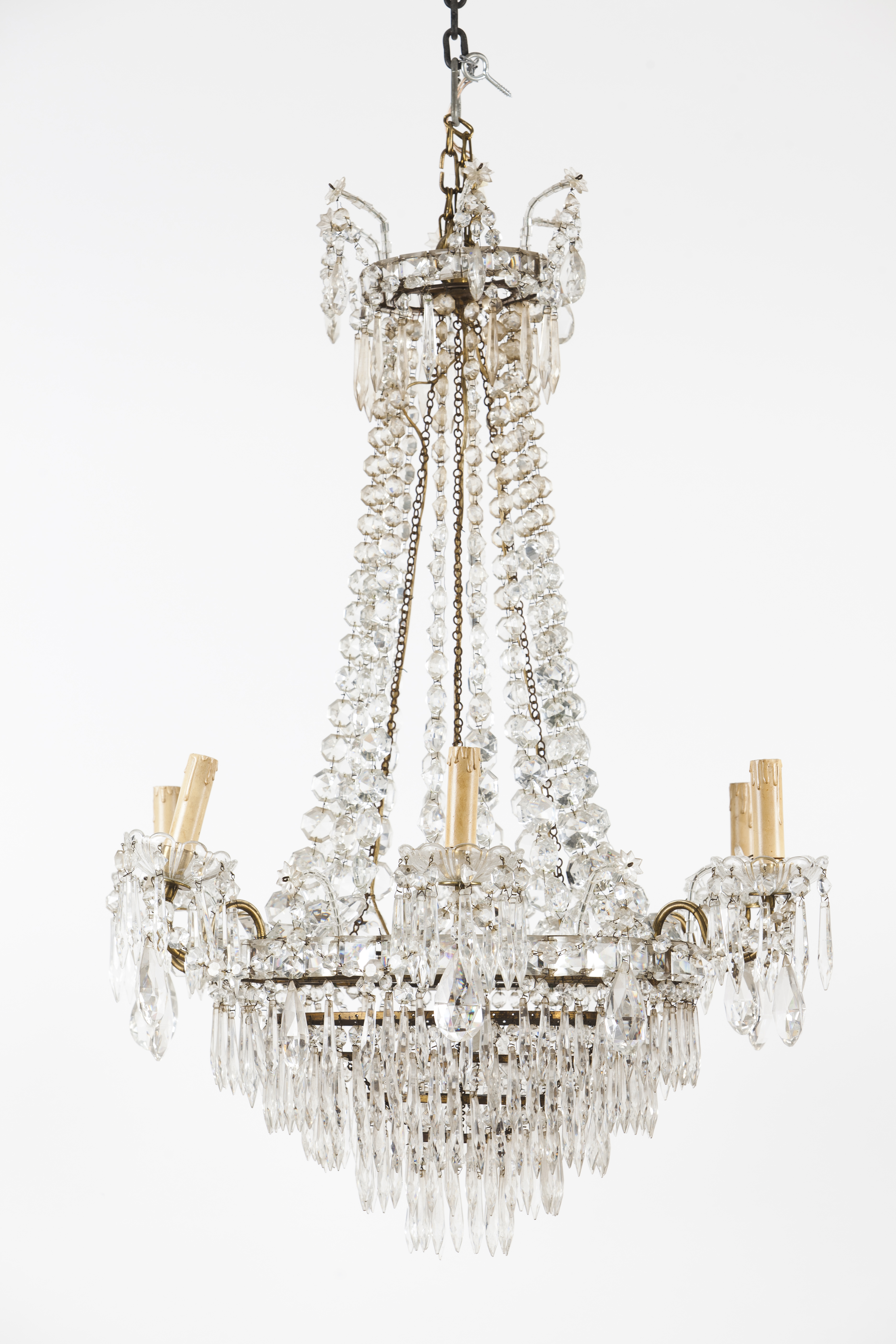 Com pingentes em vidro e crista