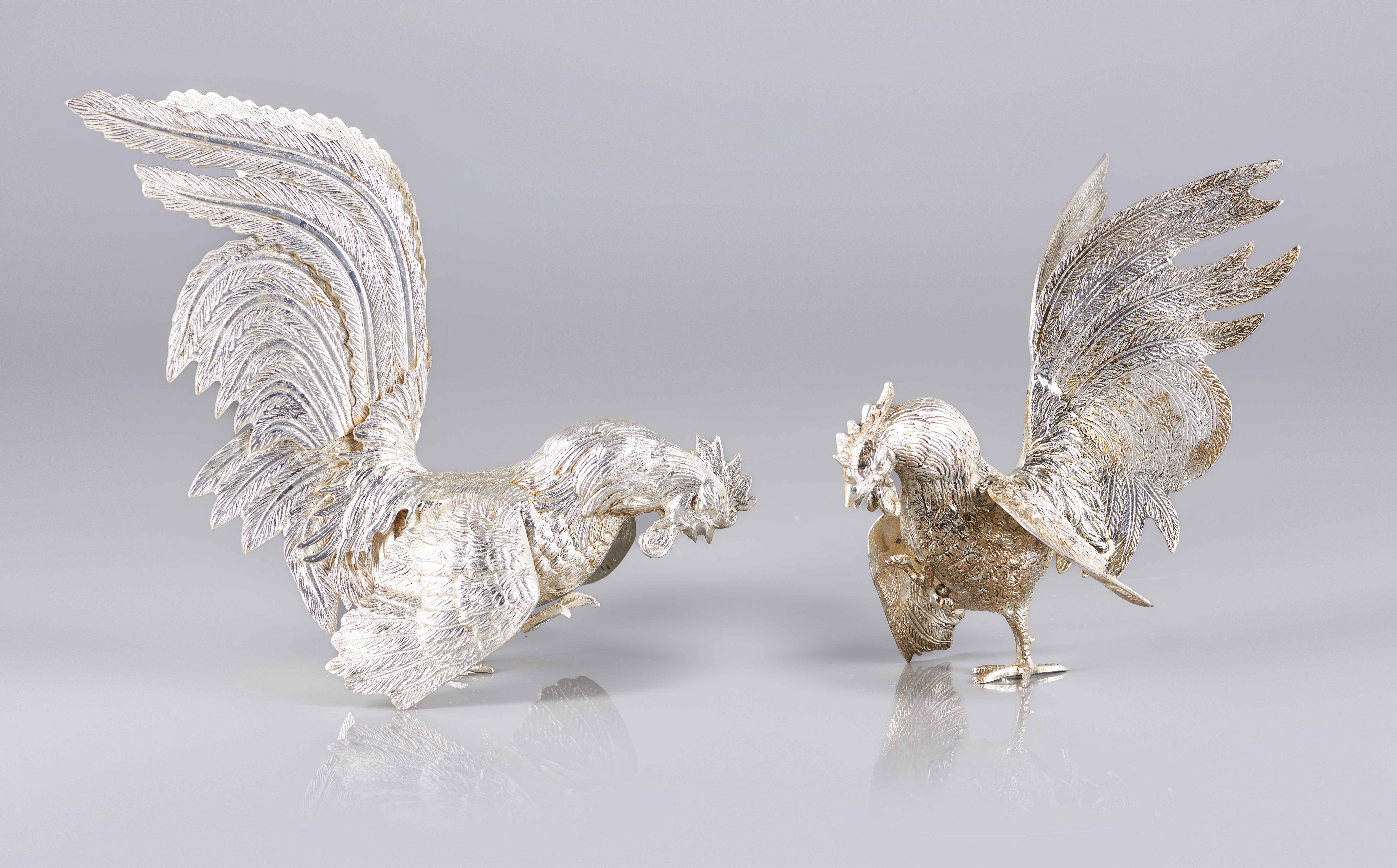 Duas esculturas em metal prateado