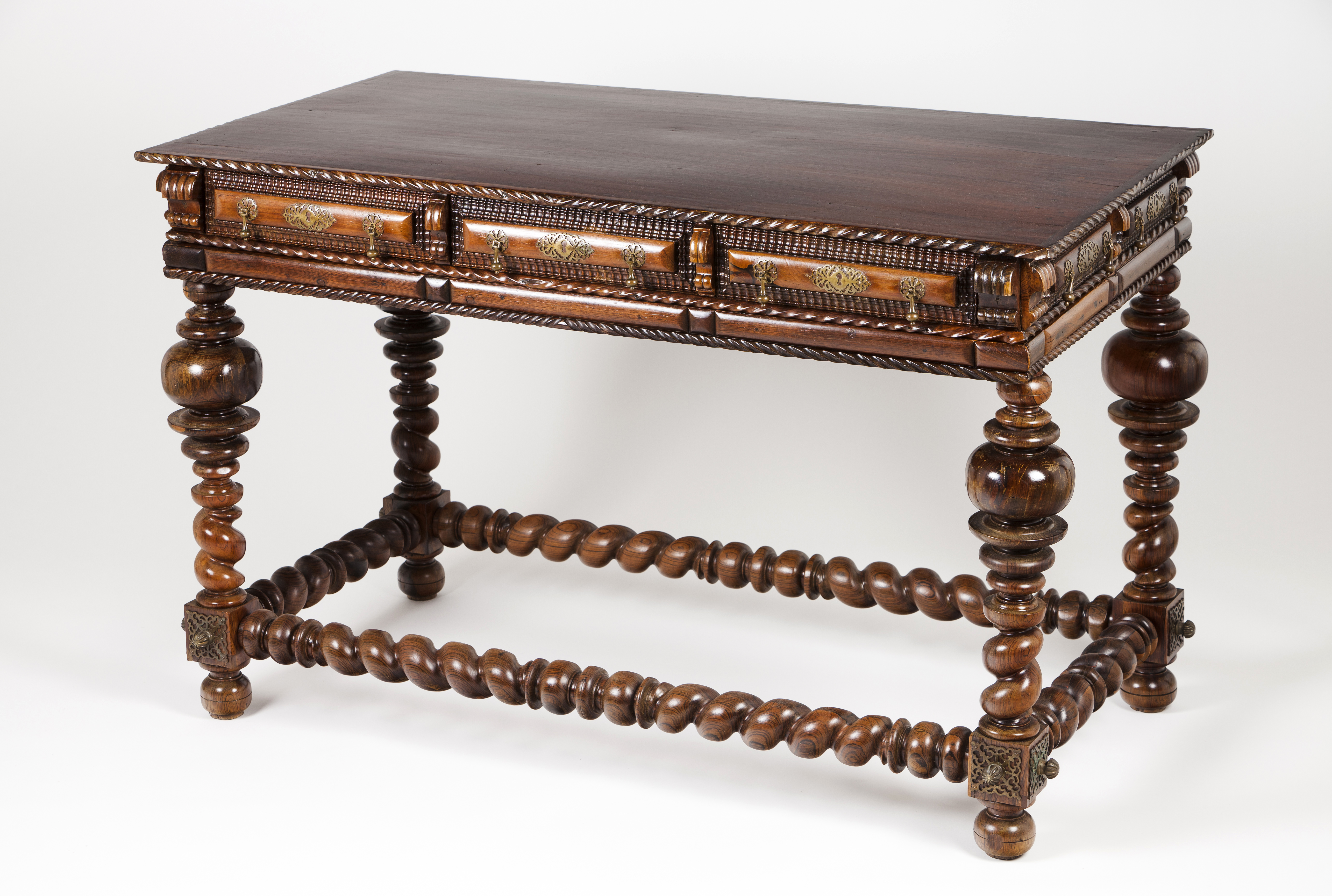 Ferragens e puxadores em bronze dourado, recortado e vazado