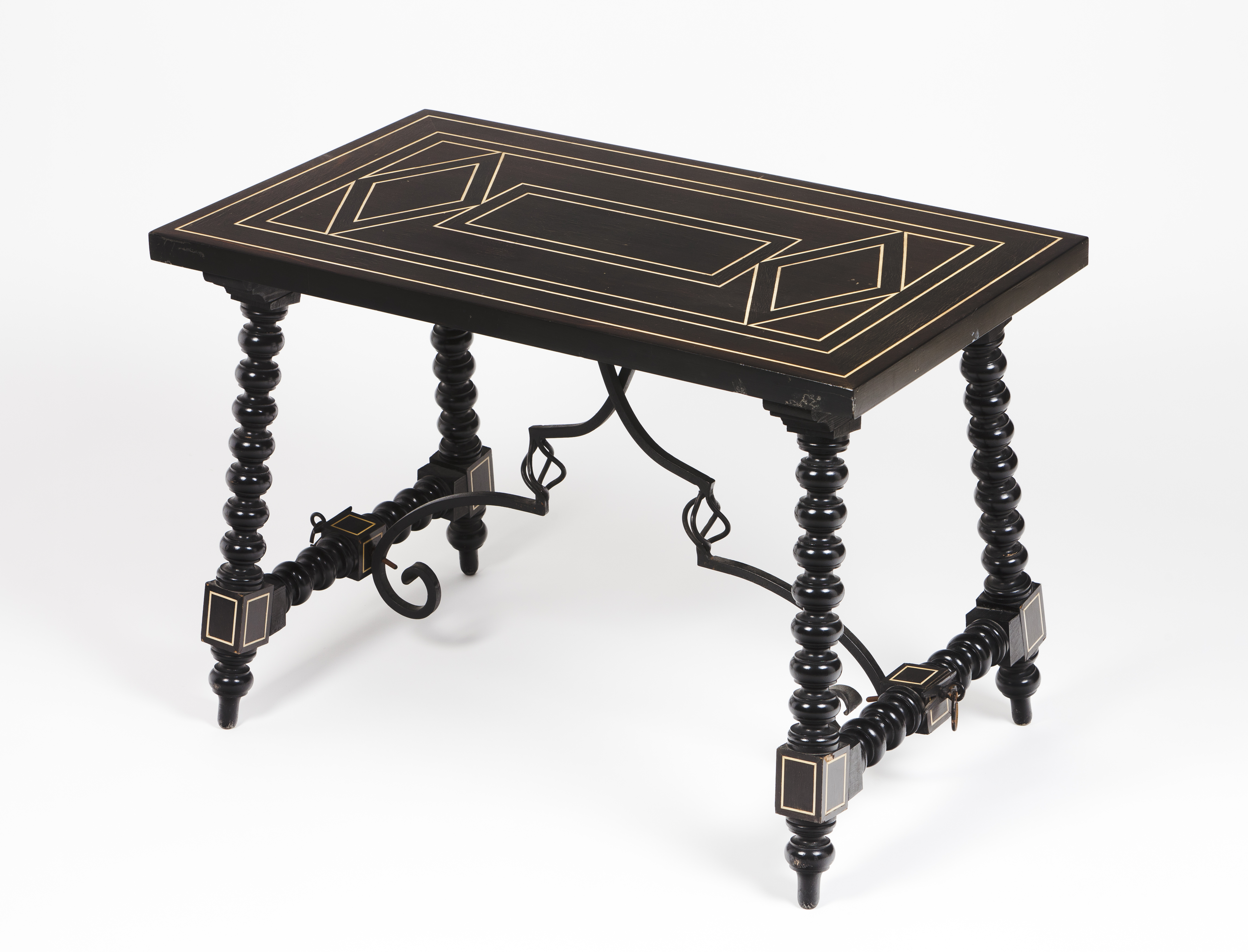 Pernas e travessas torneadas e fiadores em ferro forjado