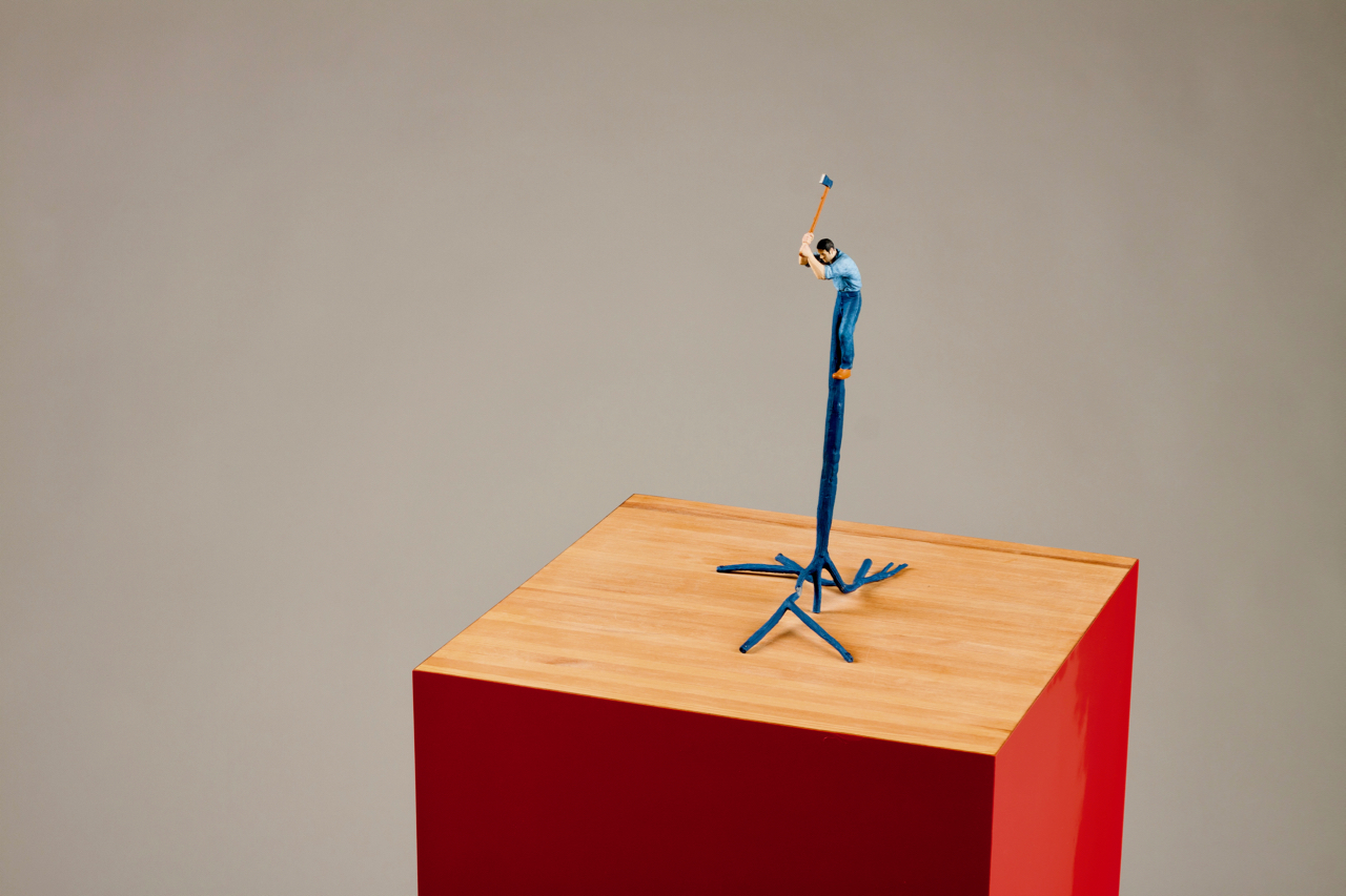 Escultura em madeira, fórmica, resina, estanho e tinta de esmalte