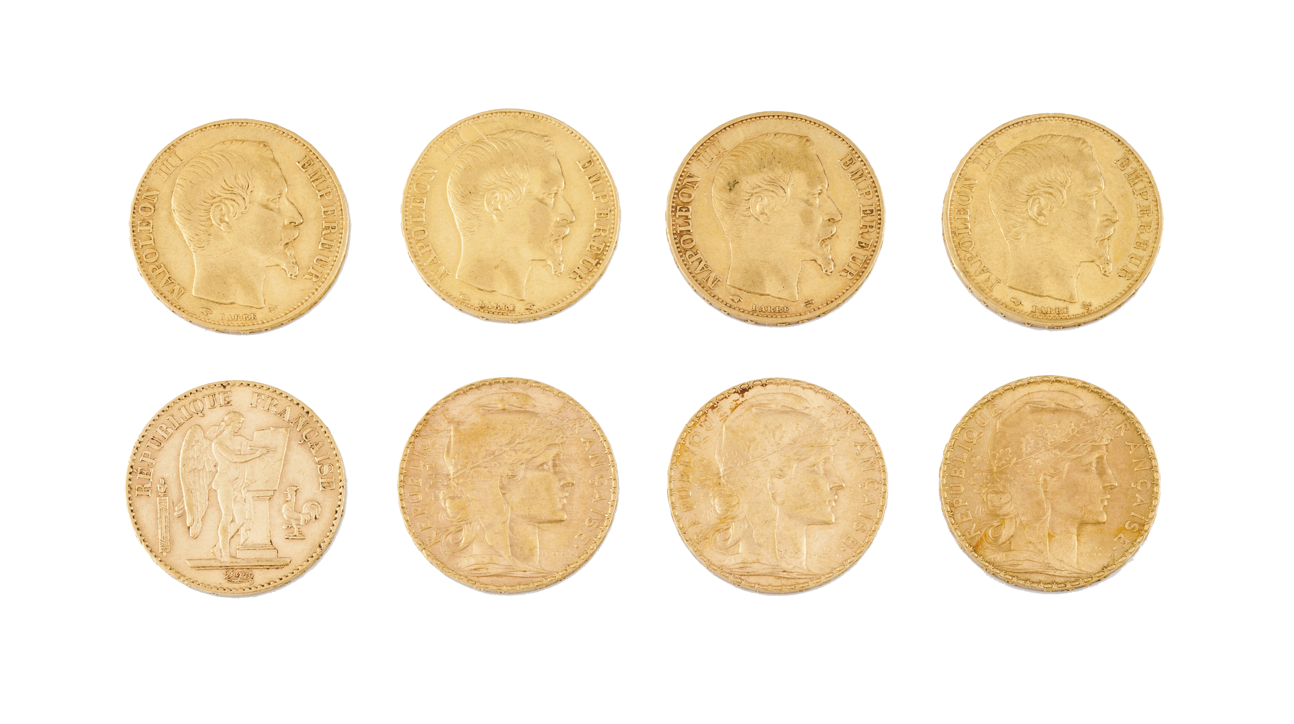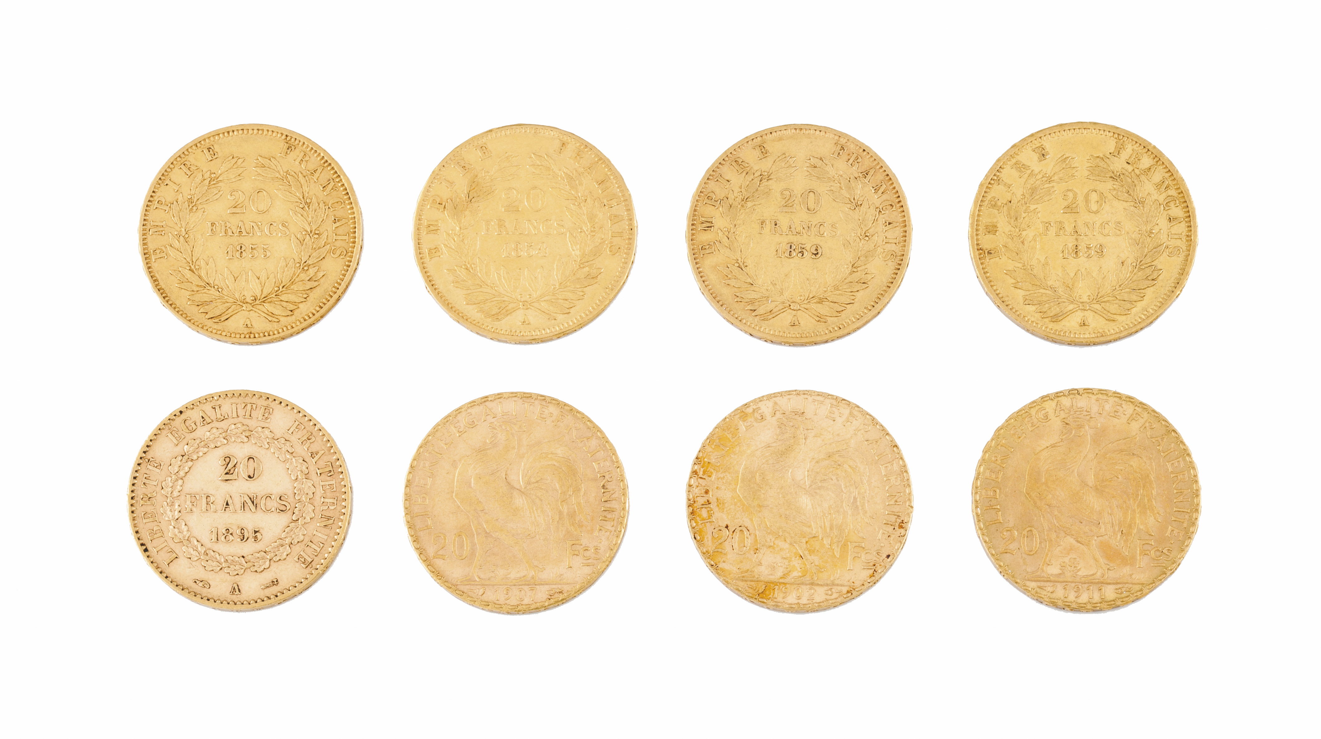 Oito Moedas de 20 Francos Franceses