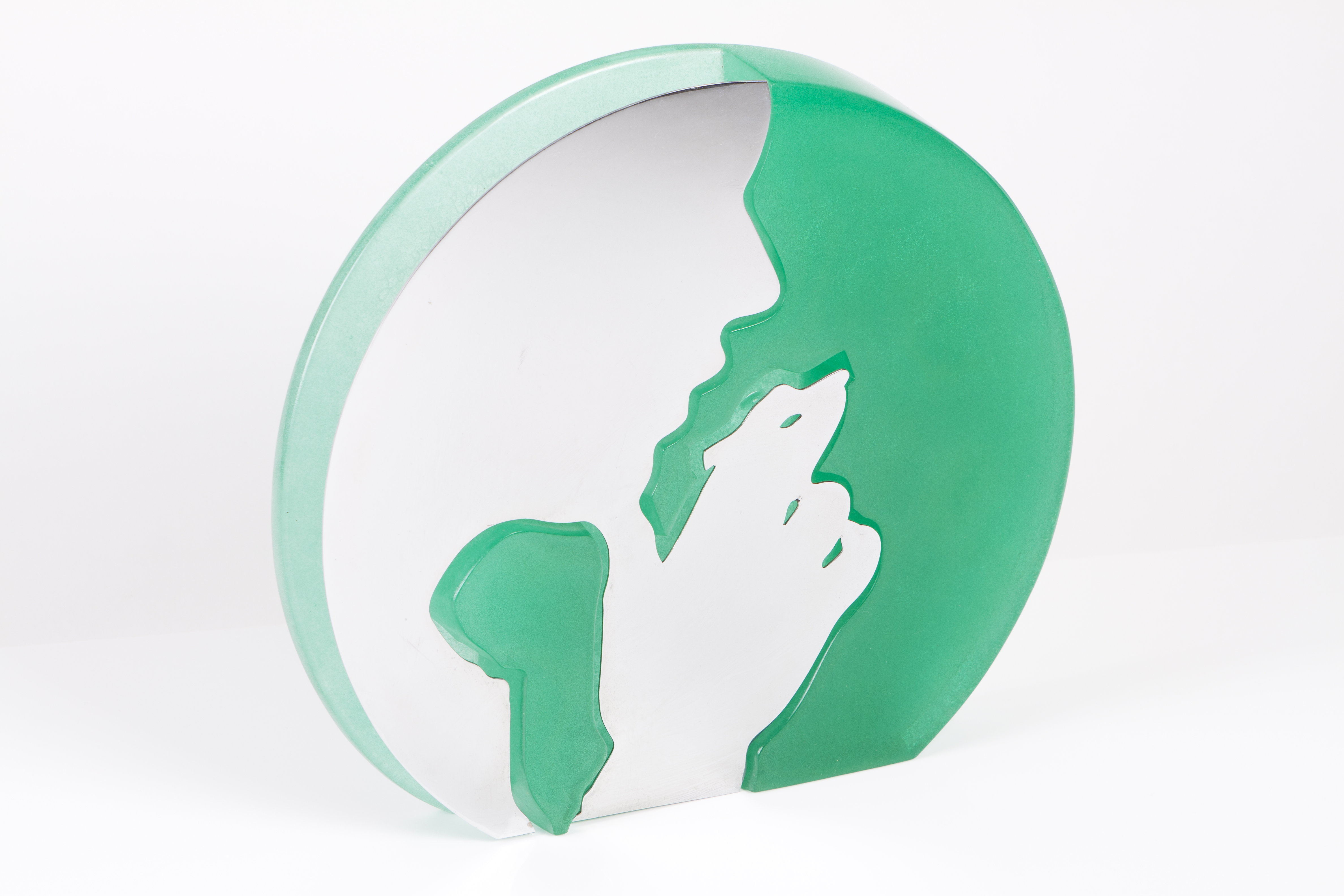 Escultura em pasta de vidro e metal cromado