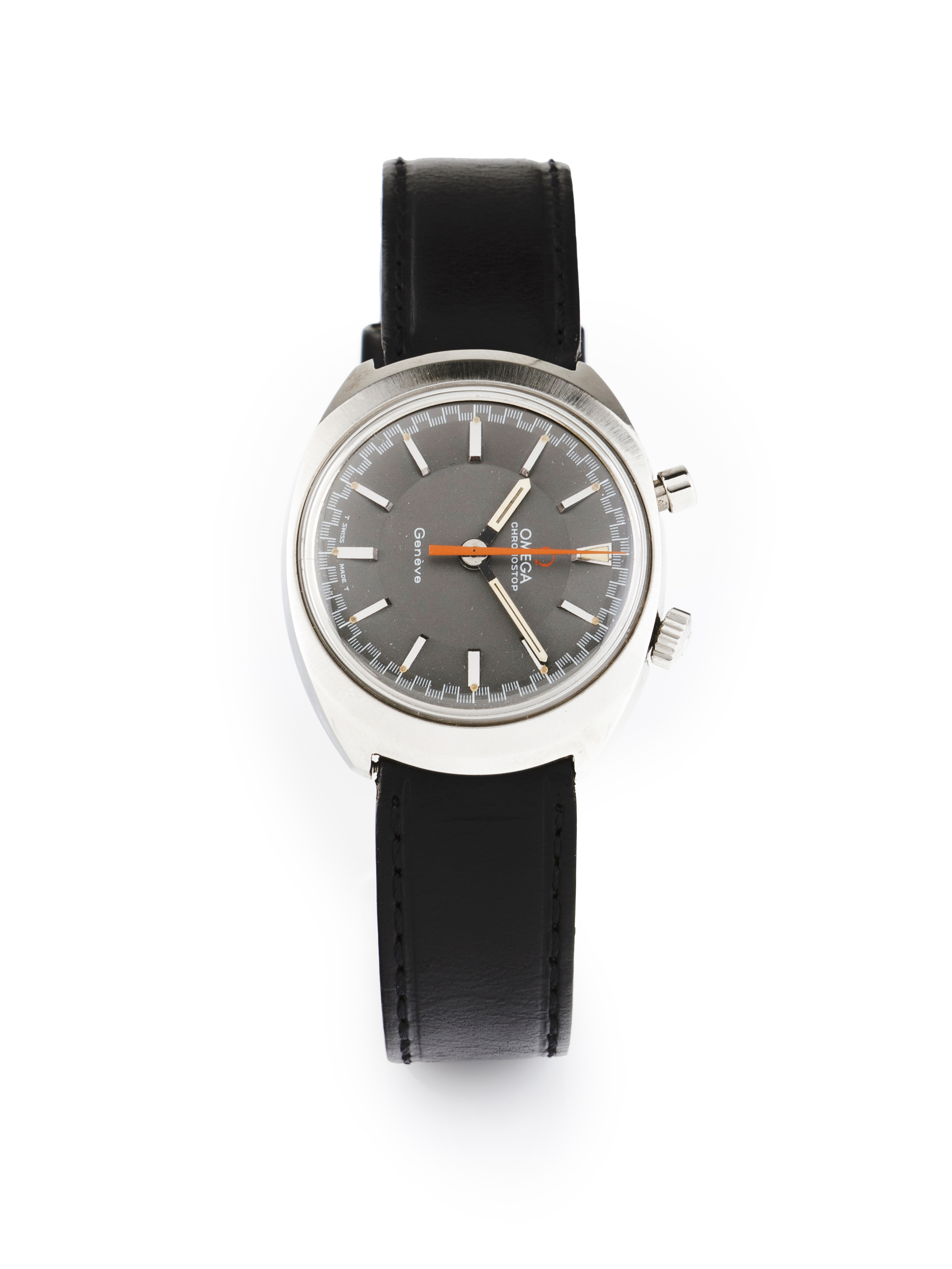 Modelo Geneve Chronostop Driver. Movimento mecânico de corda manual (cal. 865) com função stoptime e com Nº de série 29610978. Caixa em aço com ref Nº 145.009/145.010. Em excelente estado de conservação.