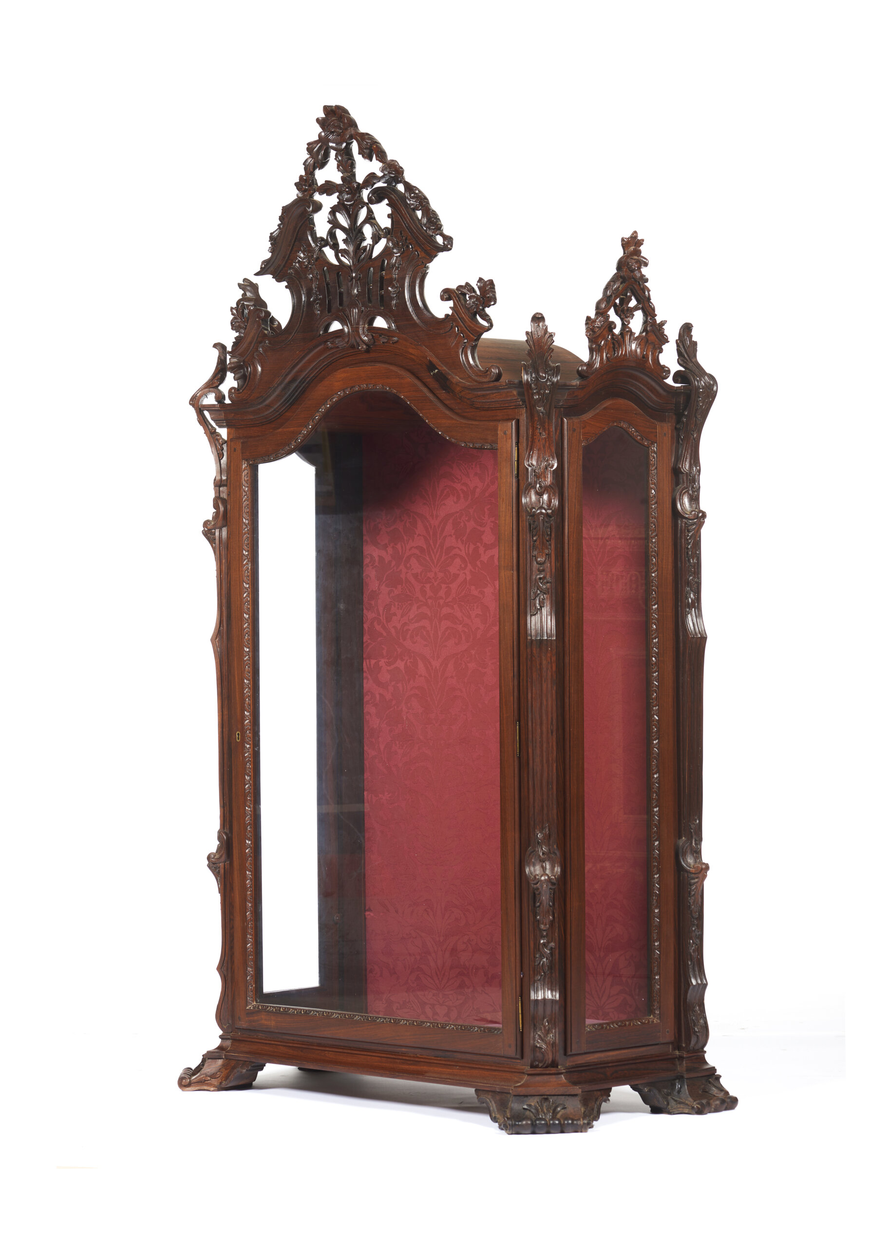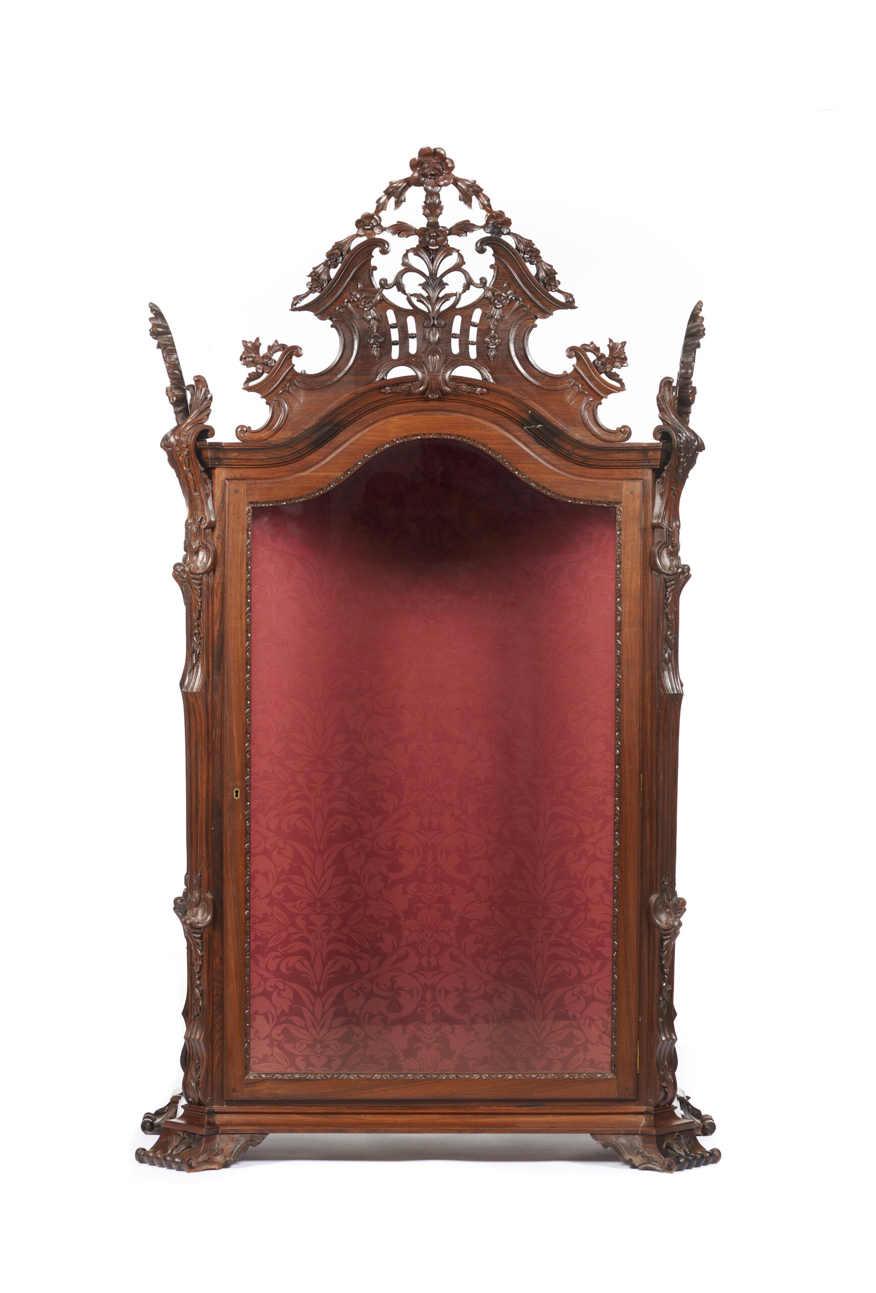 Decoração entalhada e vazada representando enrolamentos, flores e outros motivos vegetalistas