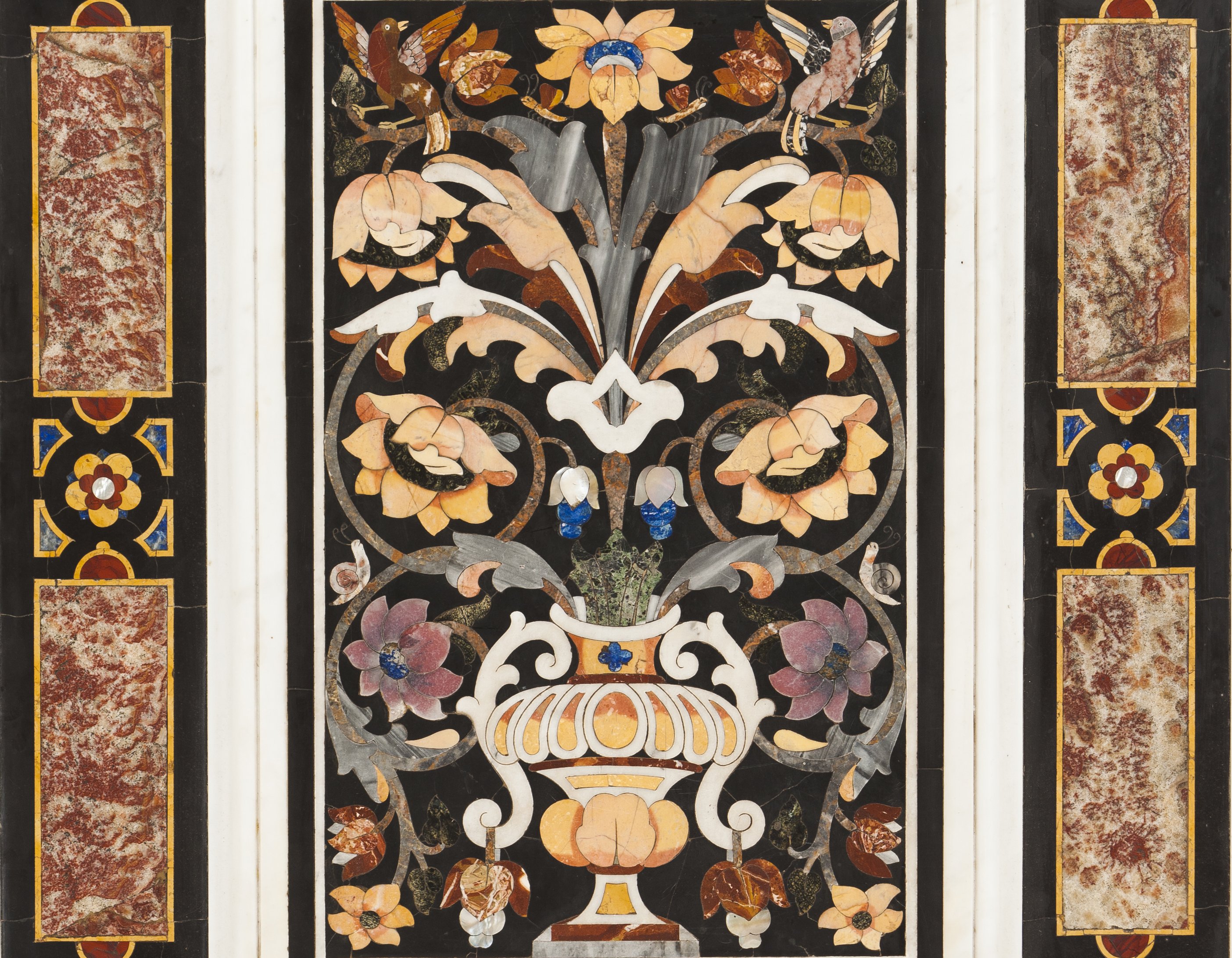 Painel Pietra Dura, "vaso com bouquet de flores"