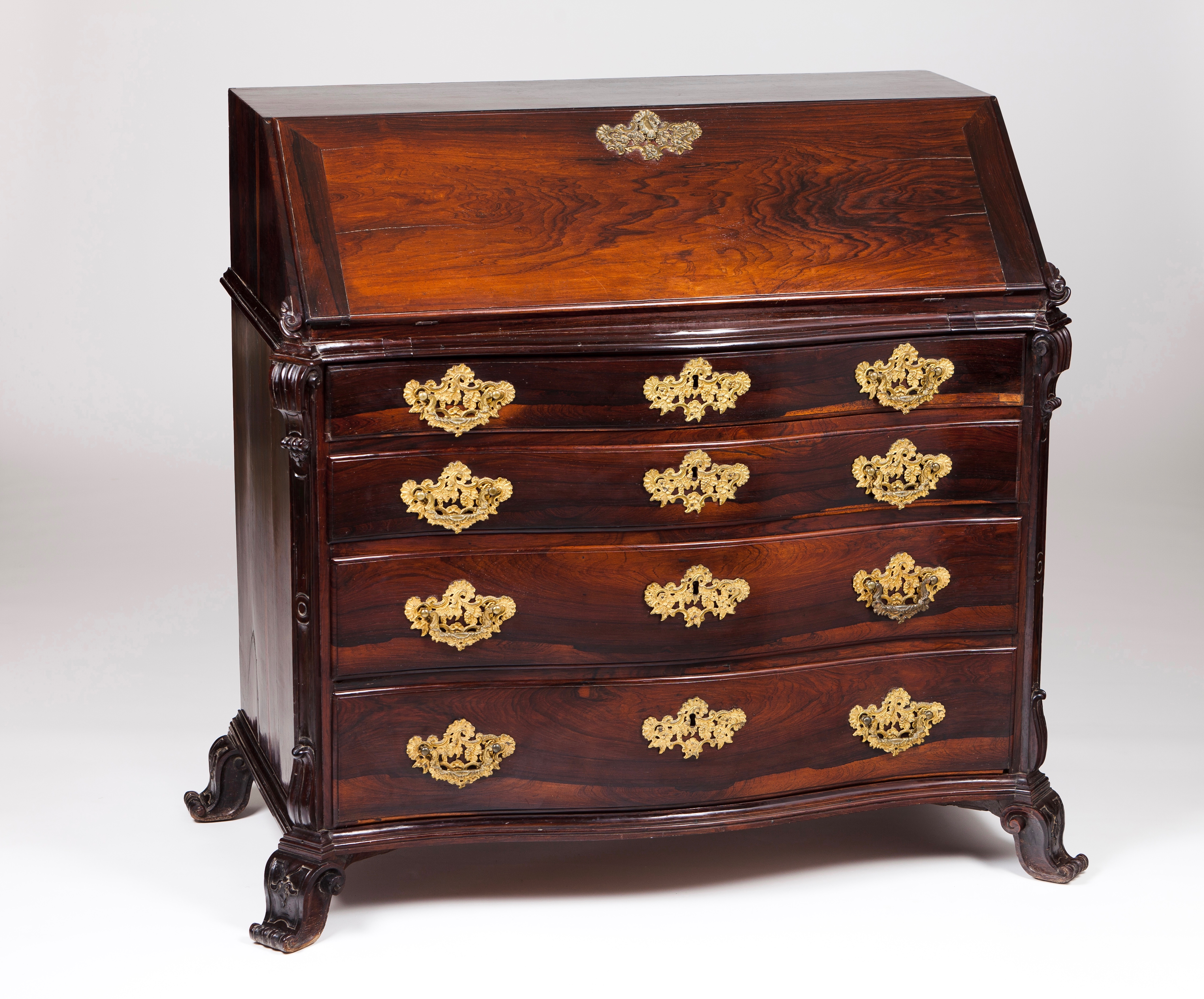 Pés entalhados em voluta