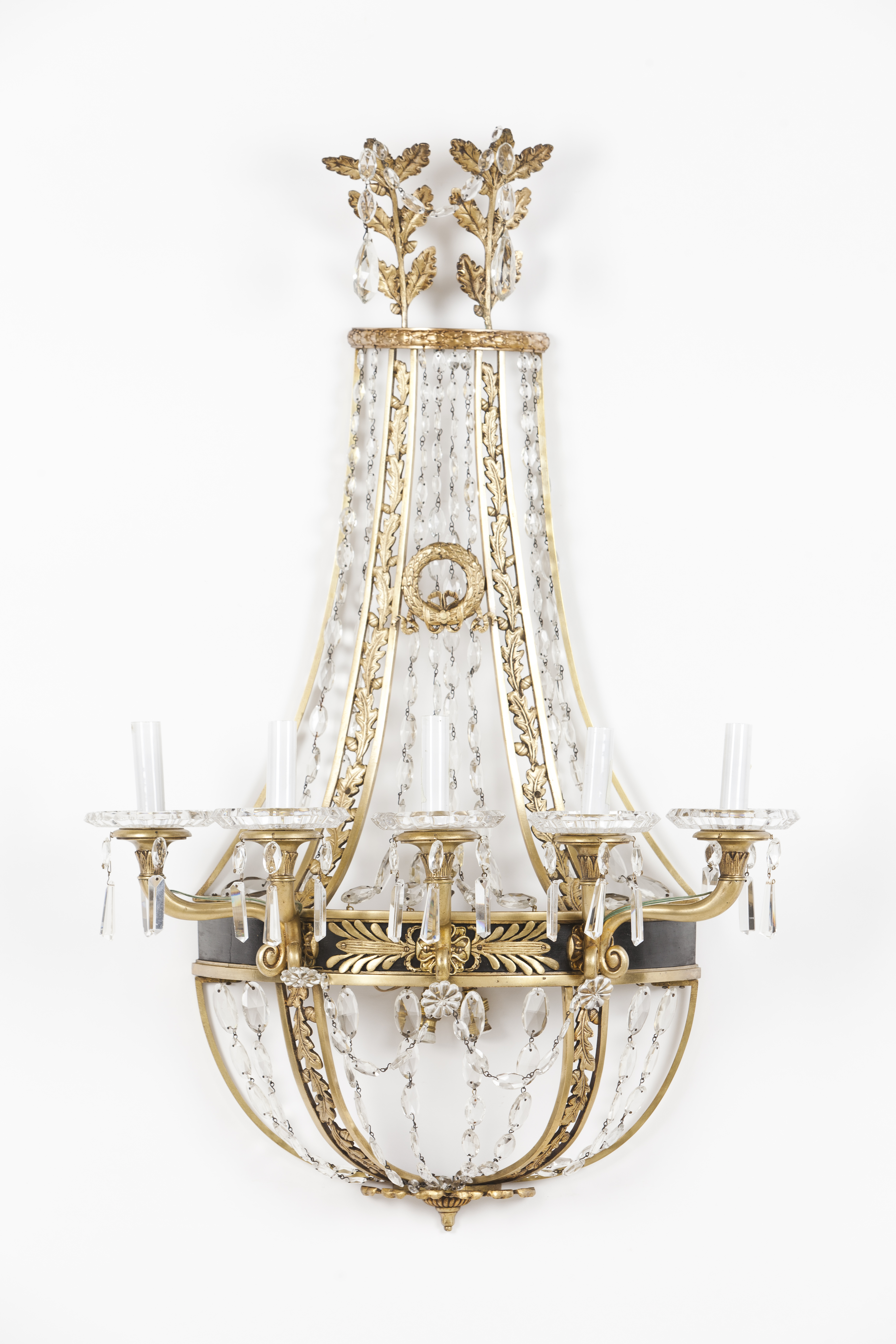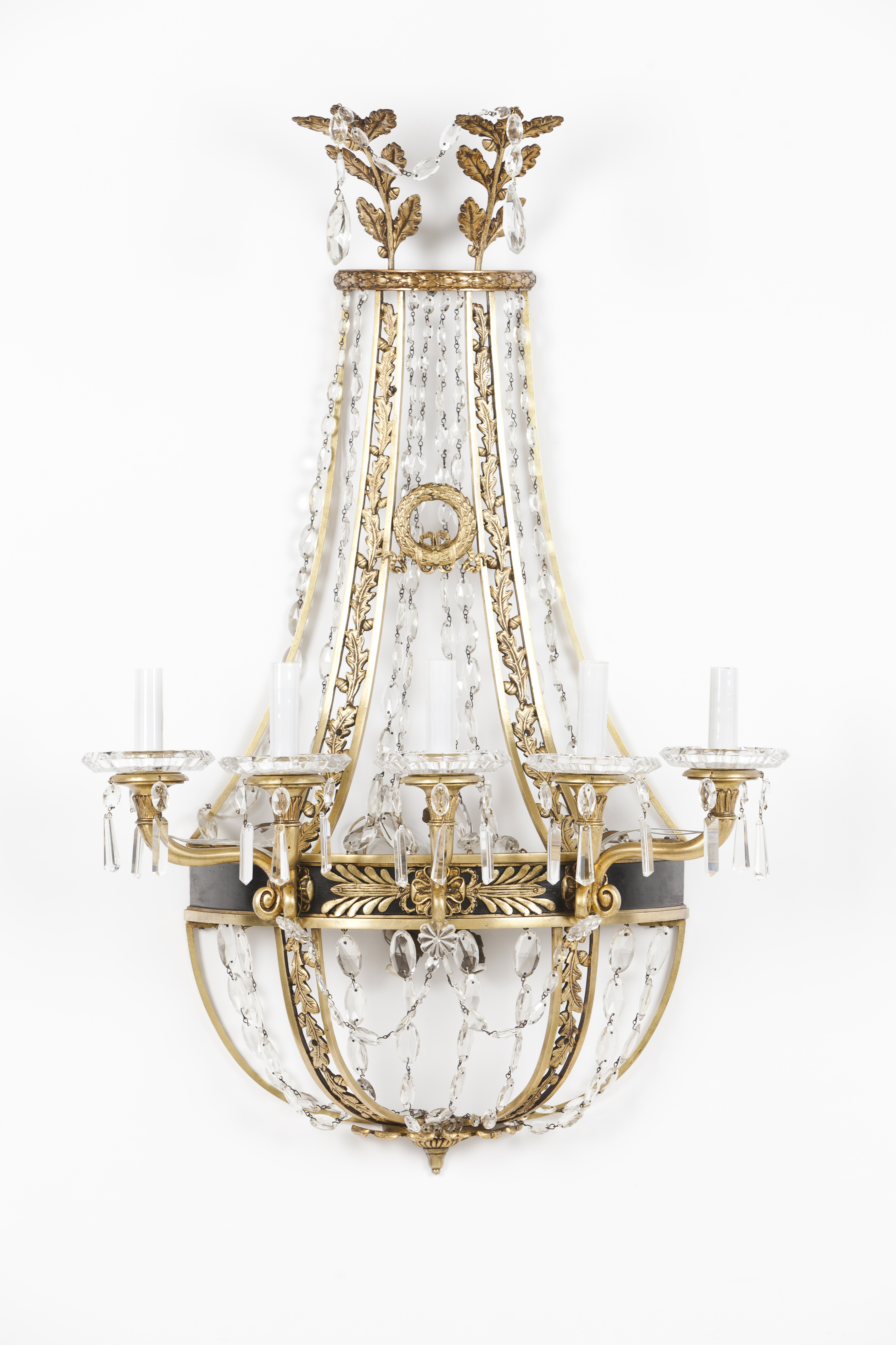 Com velas em vidro coalhado e pingentes, contas e bobeches em cristal