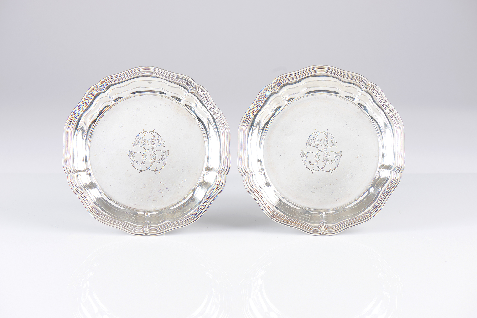Fabricante Ernest COMPÈRE, com decoração de bordo recortado e filetado com fundo monogramado PE em letra inglesa com folhagens