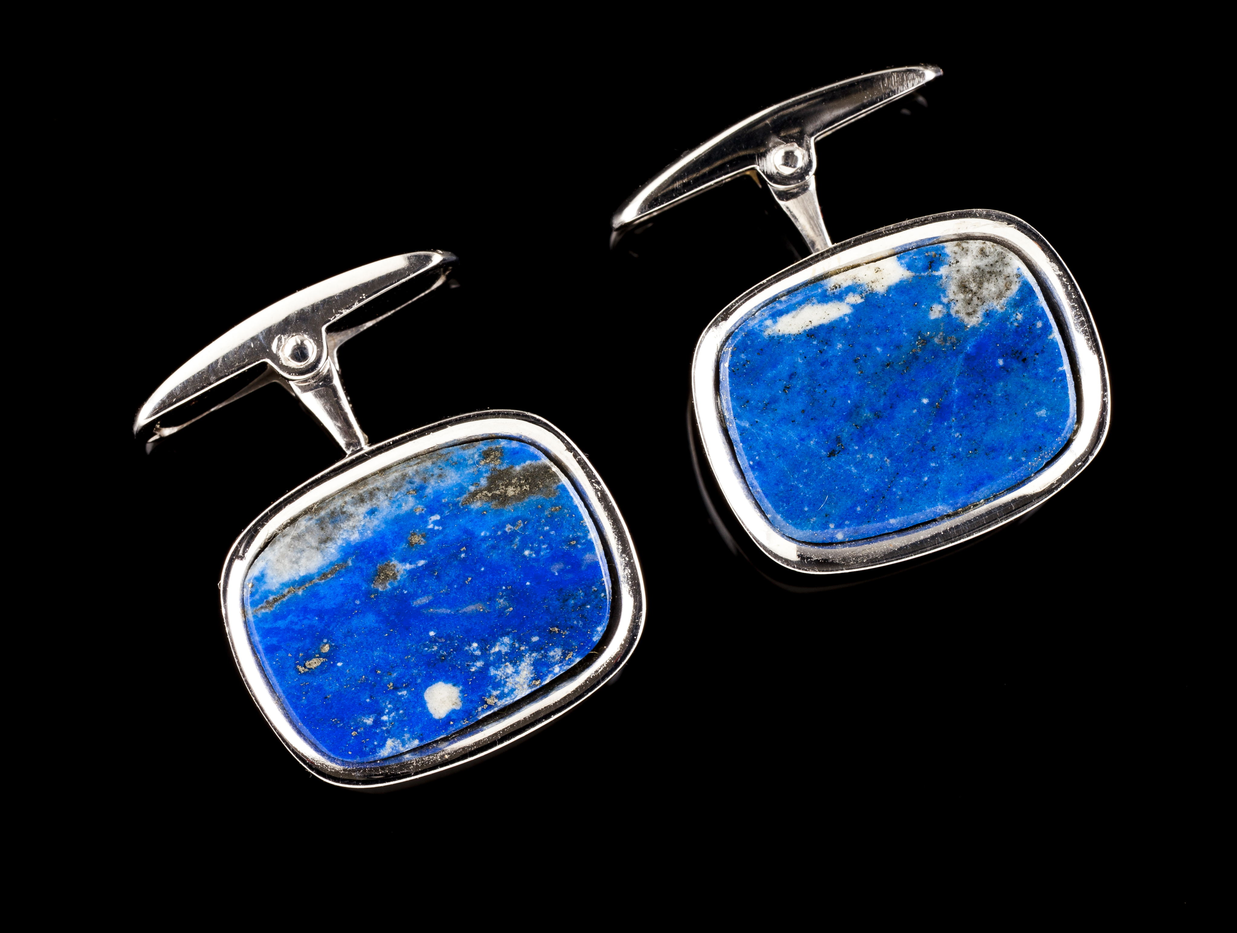 Em ouro branco cravejado com duas placas de lápis-lazúli