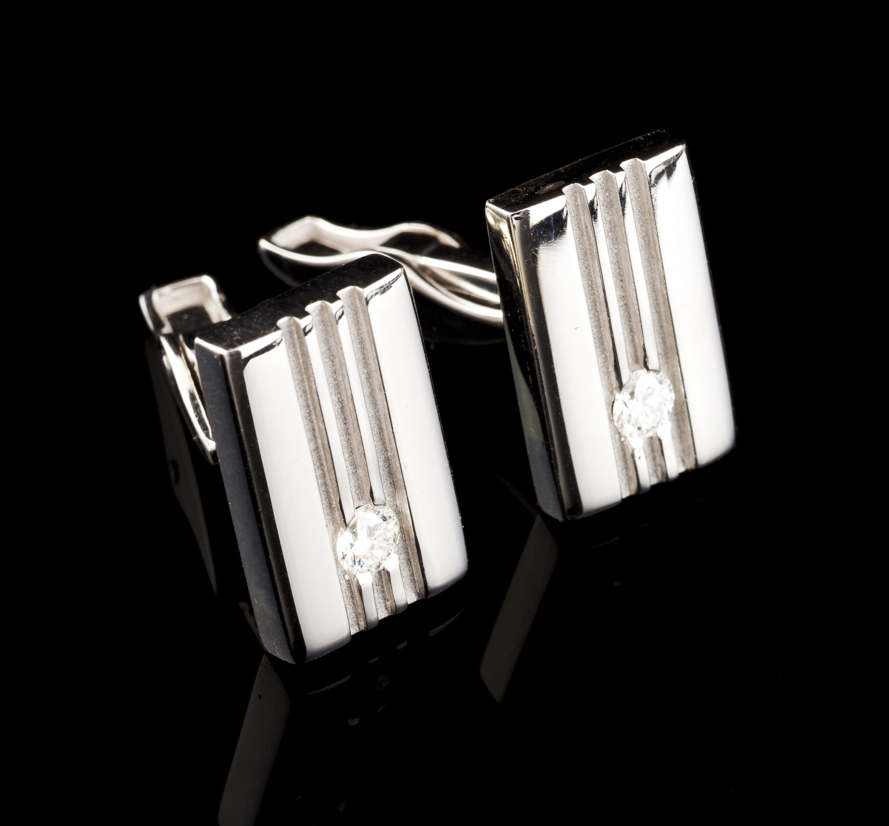 Em ouro branco cravejado com dois diamantes talhe brilhante (ca. 0,20ct)