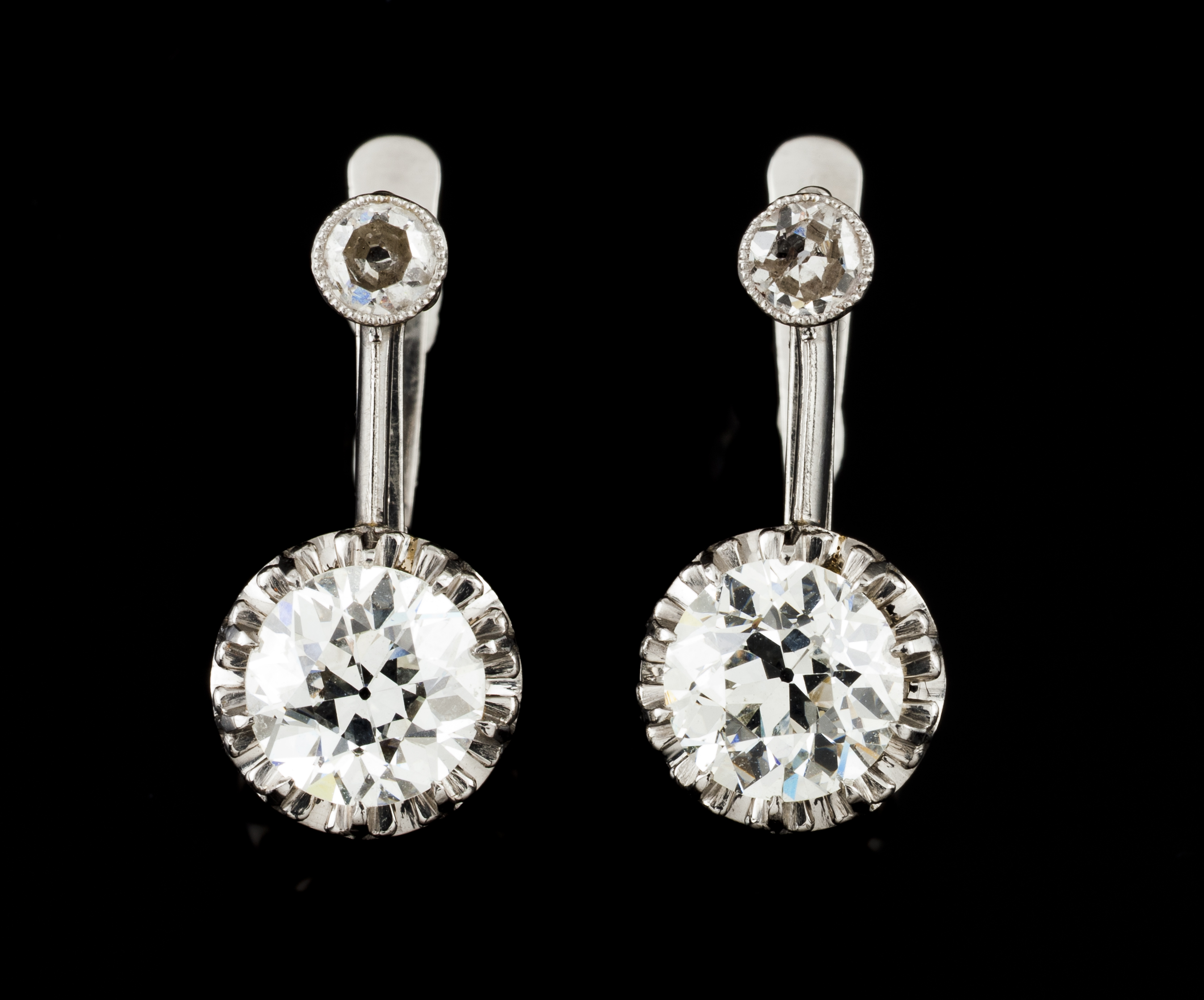 Cravejados com 4 diamantes em talhe Europa, 2 com total (0.40ct) e dois com (ca. 1.20ct e 1.30ct) de cor branca