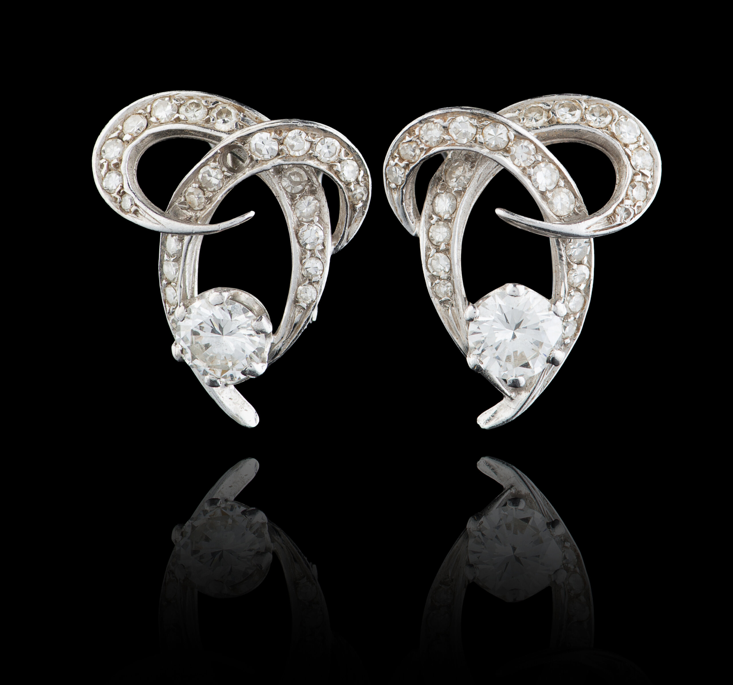 Cravejados com 50 diamantes em talhe 8/8 com o peso total aproximado de 1,50 ct. e 2 em talhe de brilhante com o peso total aproximado de 1,20 ct.