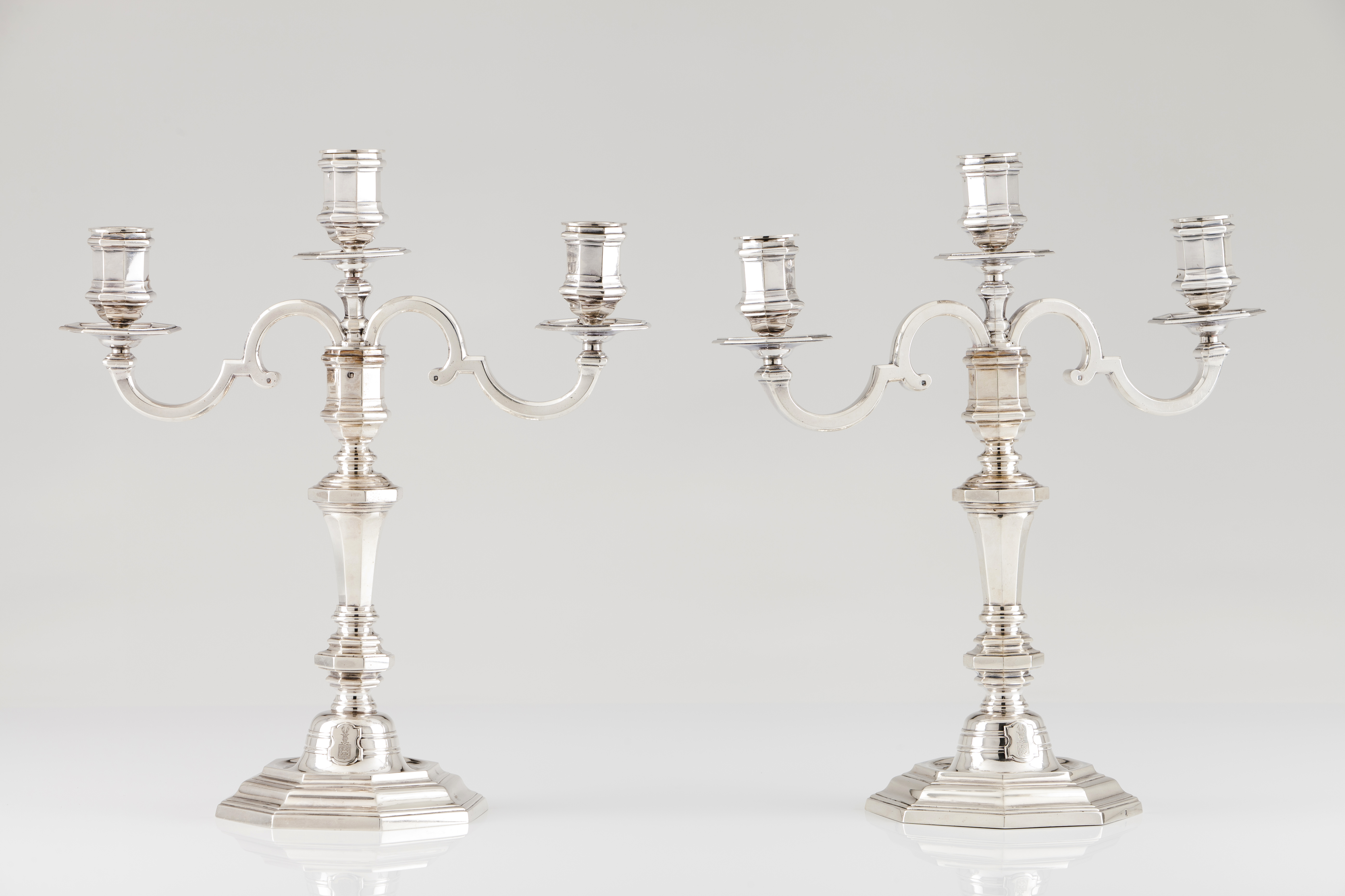 Para um par semelhante ver: Aguttes Auction House, Thursday 22 March 2012, lot 264 : "Paire de flambeaux en argent de forme octogonale", Paris 1714 et 1722, est. 20 000 – 30 000 €