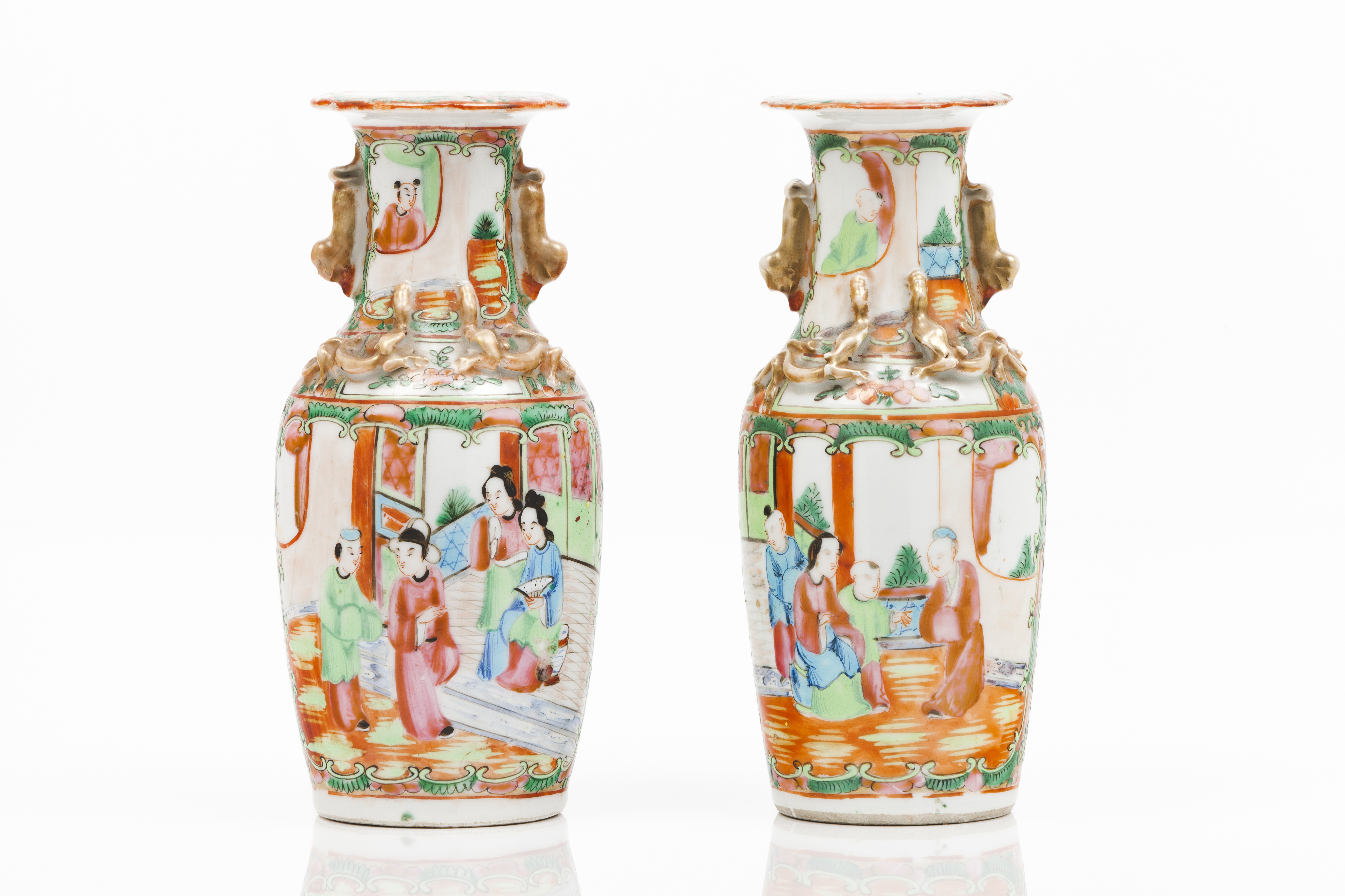 Decoração Mandarim representando paisagem com figuras, motivos florais, pássaros, insectos e outros animais