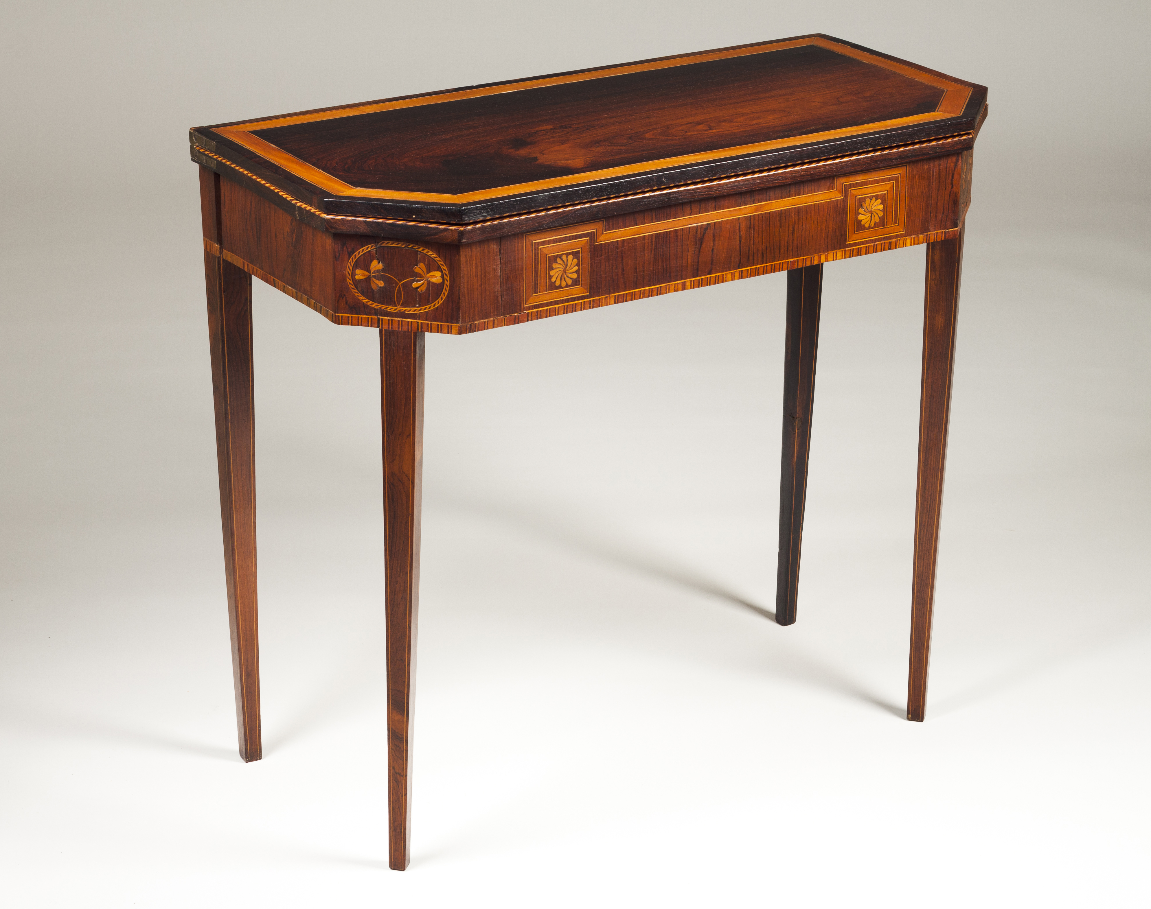 Em pau-santo com trabalho de marchetaria em espinheiro e outras madeiras