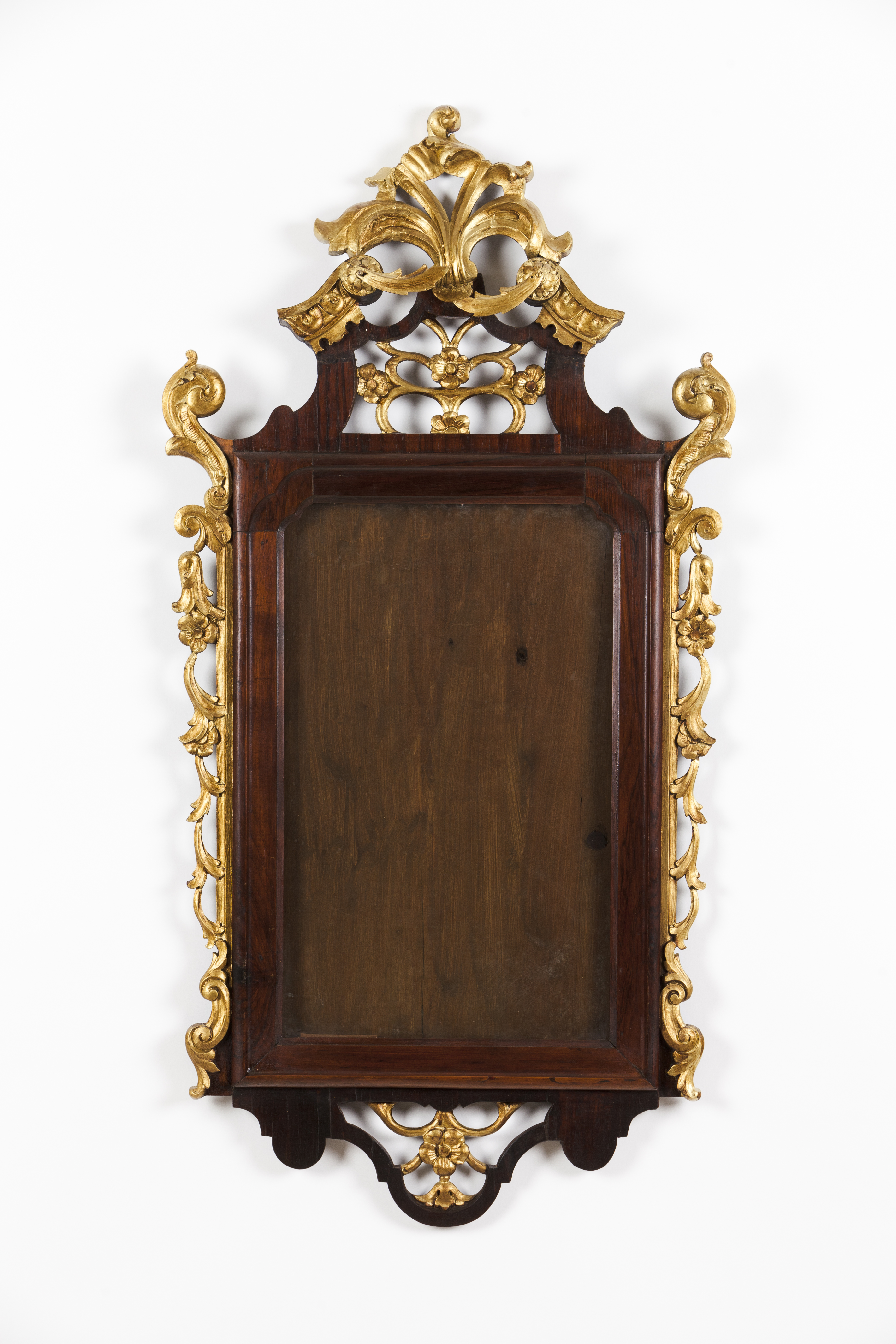Com decoração entalhada e dourada representando motivos vegetalistas