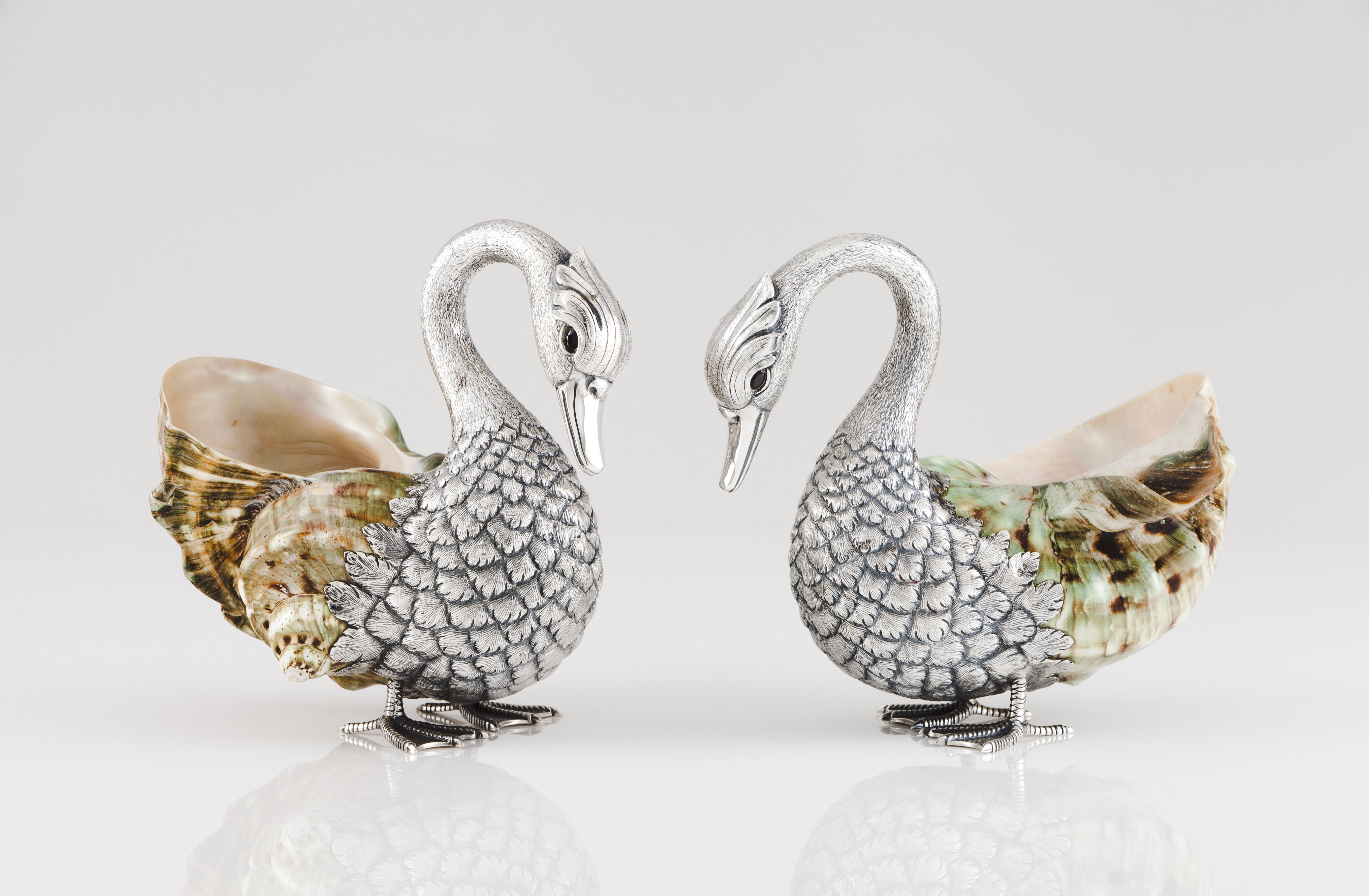 Escultura moldada gravada e cinzelada aplicada em búzio