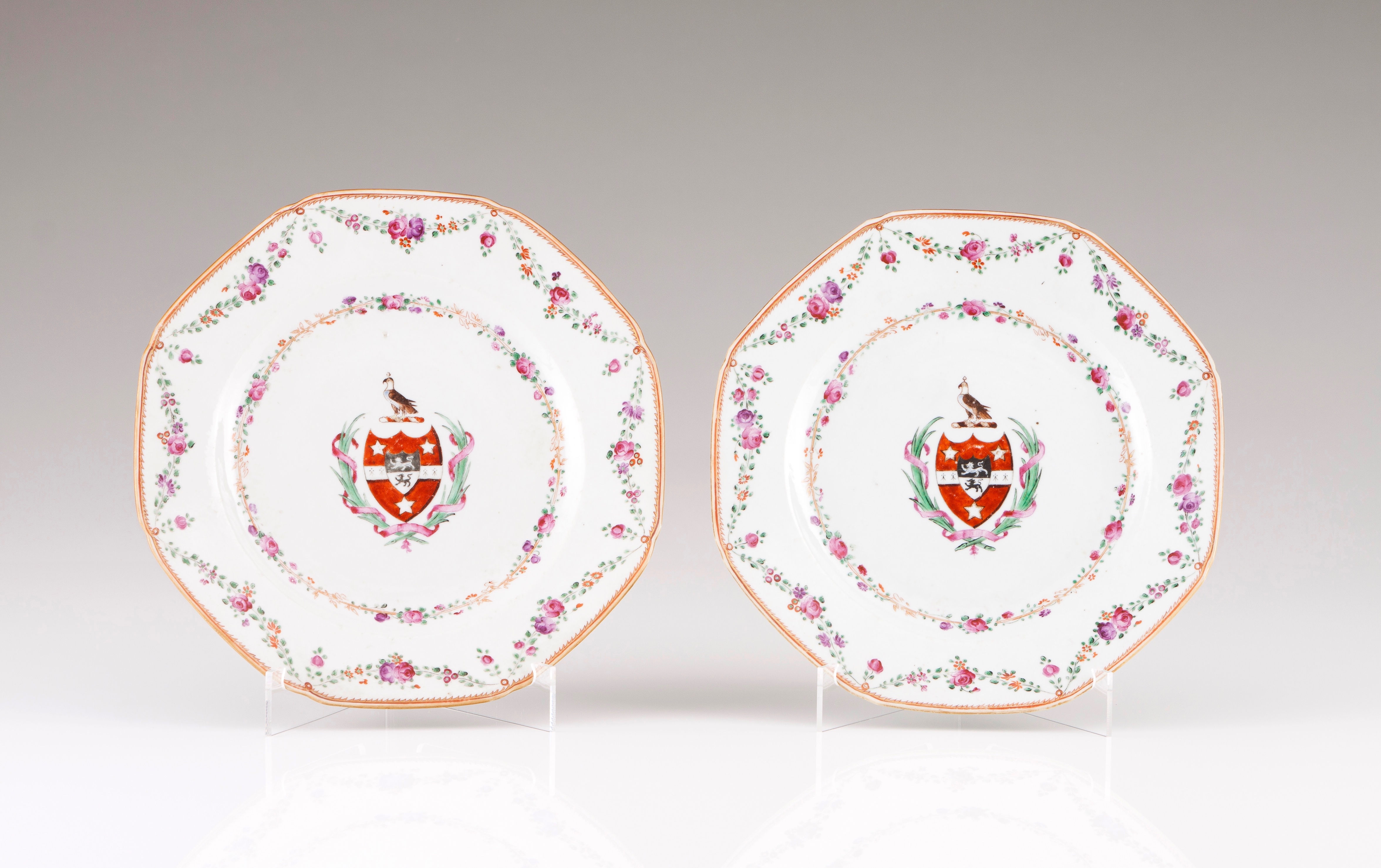 Decoração policromada com esmaltes da Família Rosa representando armas Crawfurd e Payne ao centro