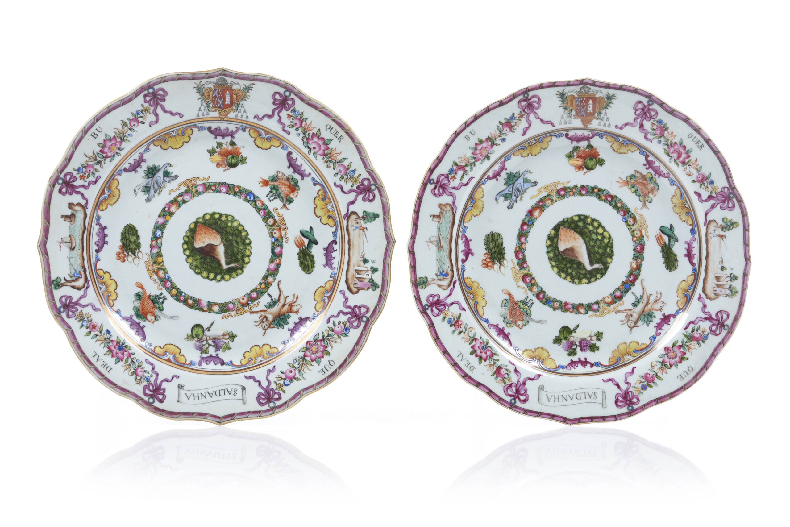 Par de pratos recortados com armas de Saldanha de Albuquerque