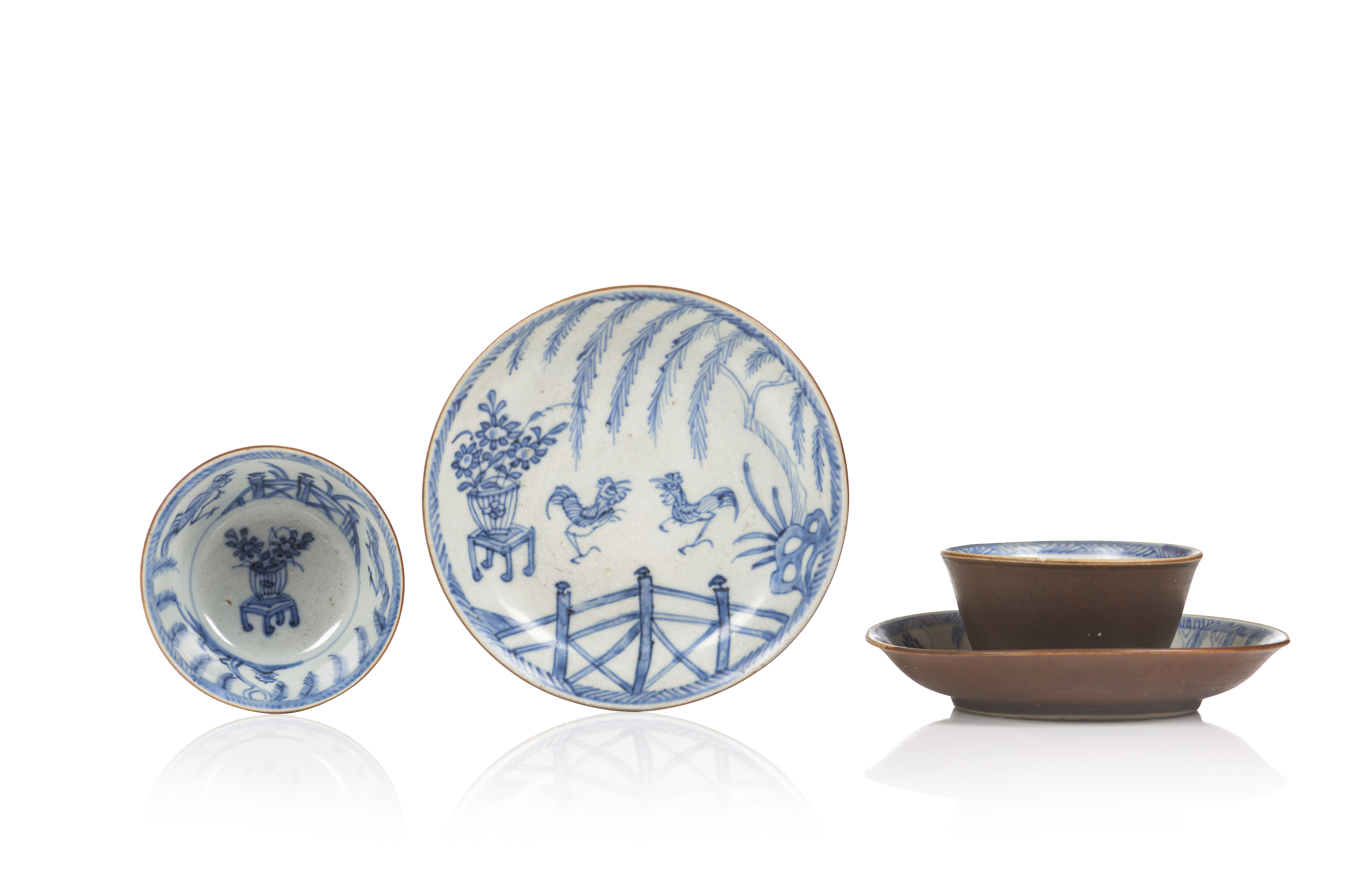 Decoradas a azul e branco no interior representando vistas de jardim com galos