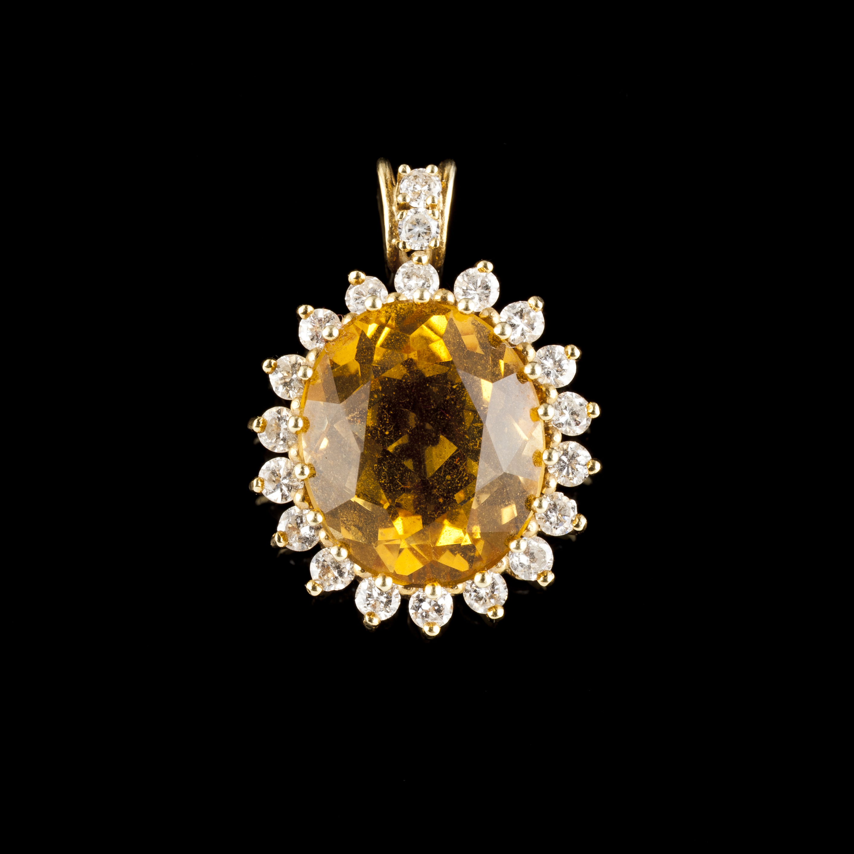 Cravejado em ouro (585/000) com um citrino talhe oval e 20 diamantes talhe brilhante (ca. 0,40ct)