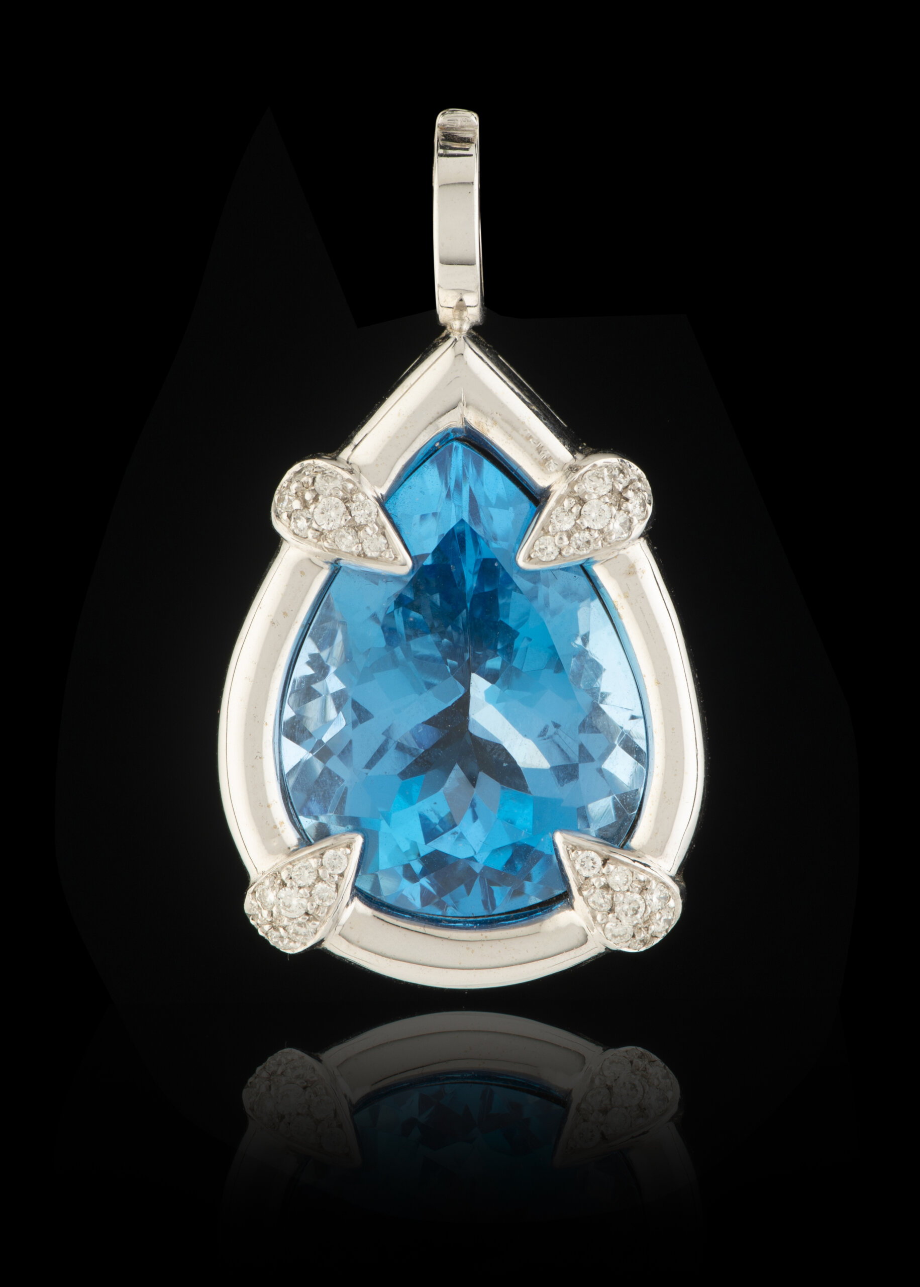 Cravejada com topázio em talhe gota e 36 diamantes em talhe de brilhante com o peso aproximado de 0,12 ct.